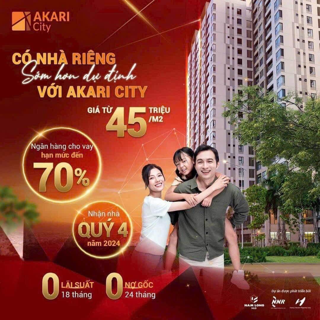 Giá bán Akari City chỉ từ 41 triệu/m2 ( bao gồm nội thất hoàn thiện cơ bản, chưa bao gồm VAT ), bàn giao nhà 10/2024 cùng nhiều chương trình ưu đãi đặc biệt: