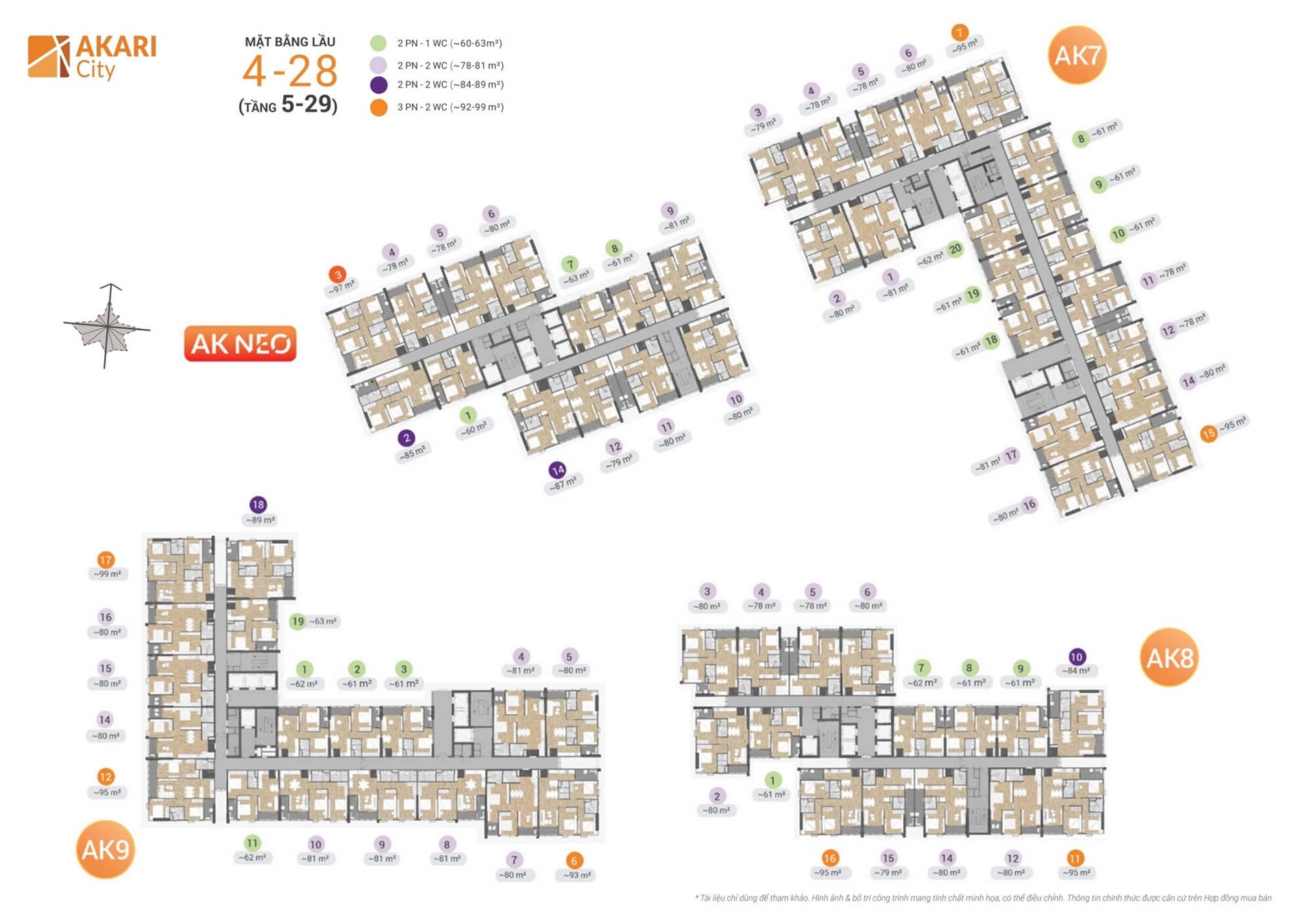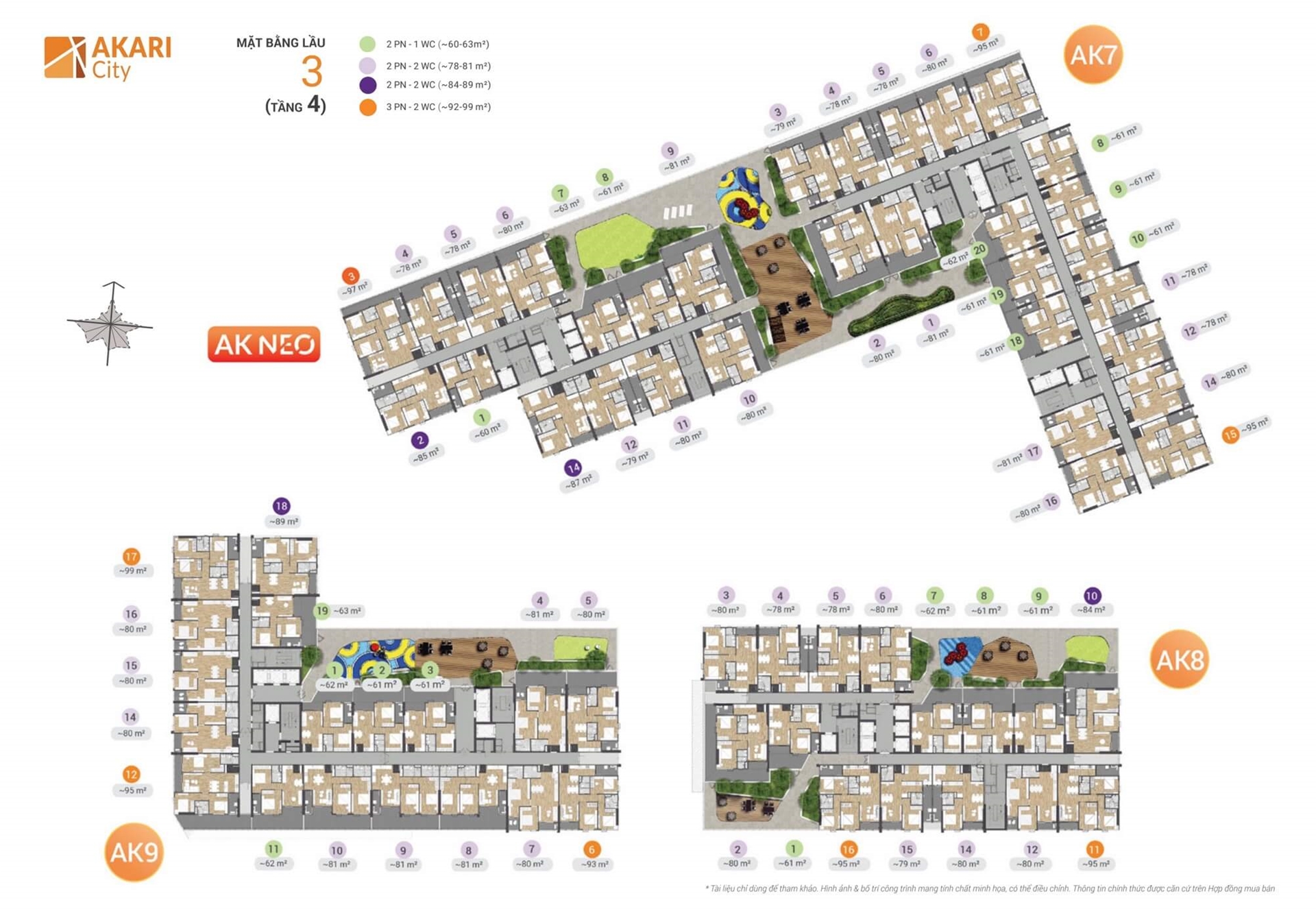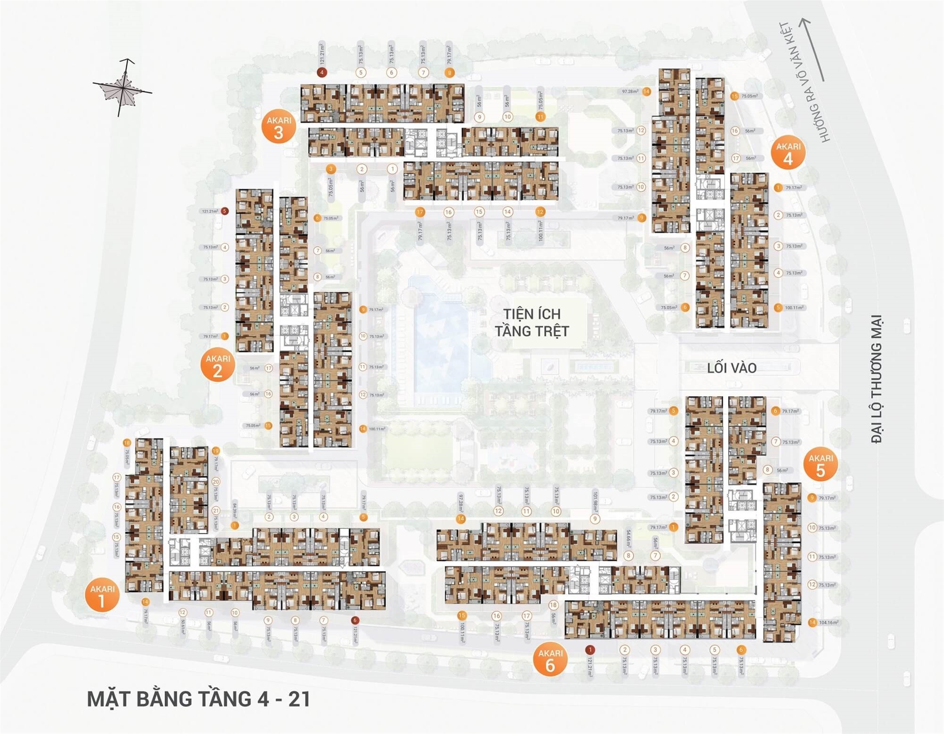 Mặt bằng Akari City được bố trí thông minh, các căn hộ với cửa sổ và ban công lớn giúp ngôi nhà luôn tràn ngập ánh sáng và không khí trực tiếp từ thiên nhiên.