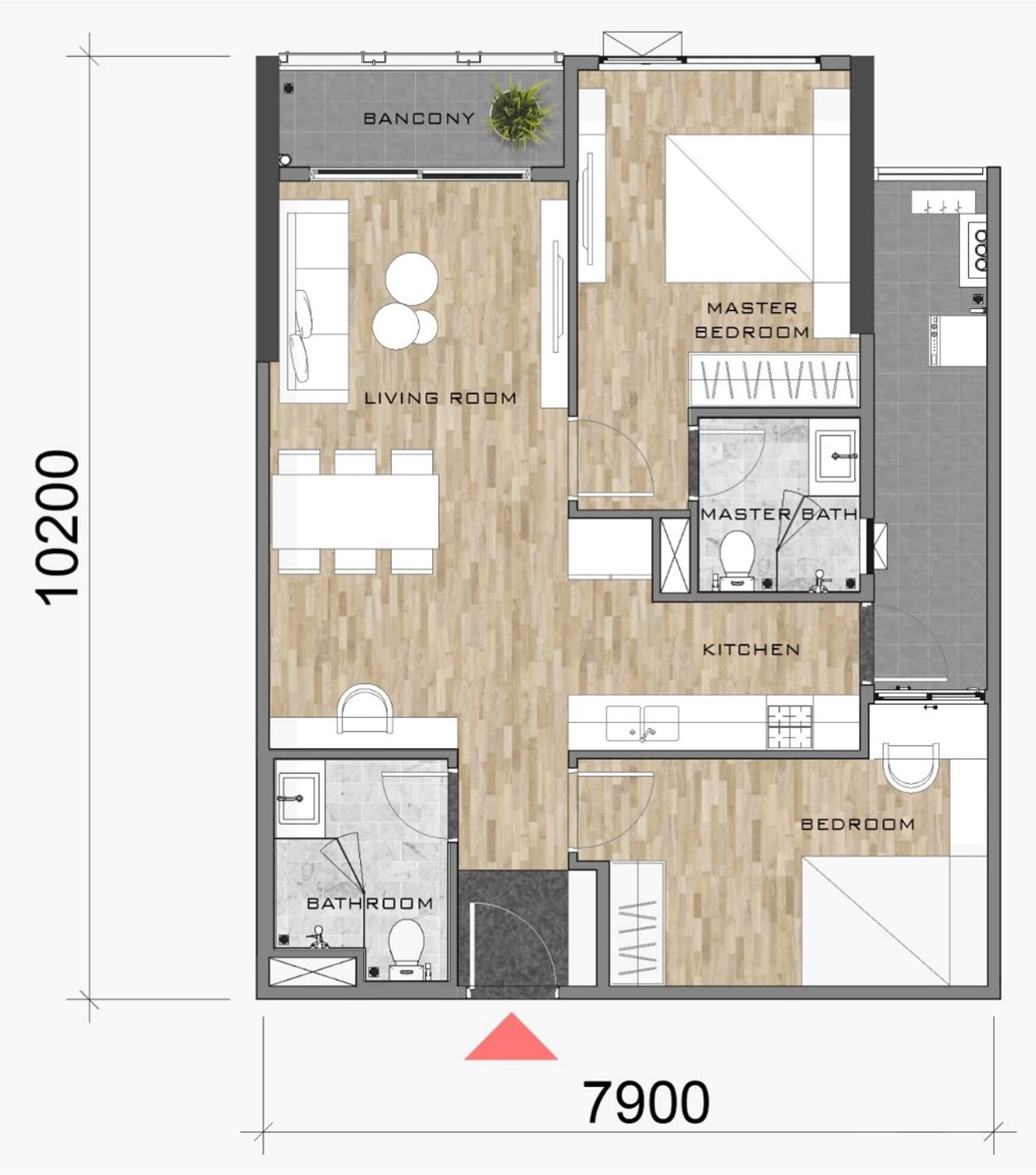 Căn 2 PN & 1 WC: 56 – 63m²