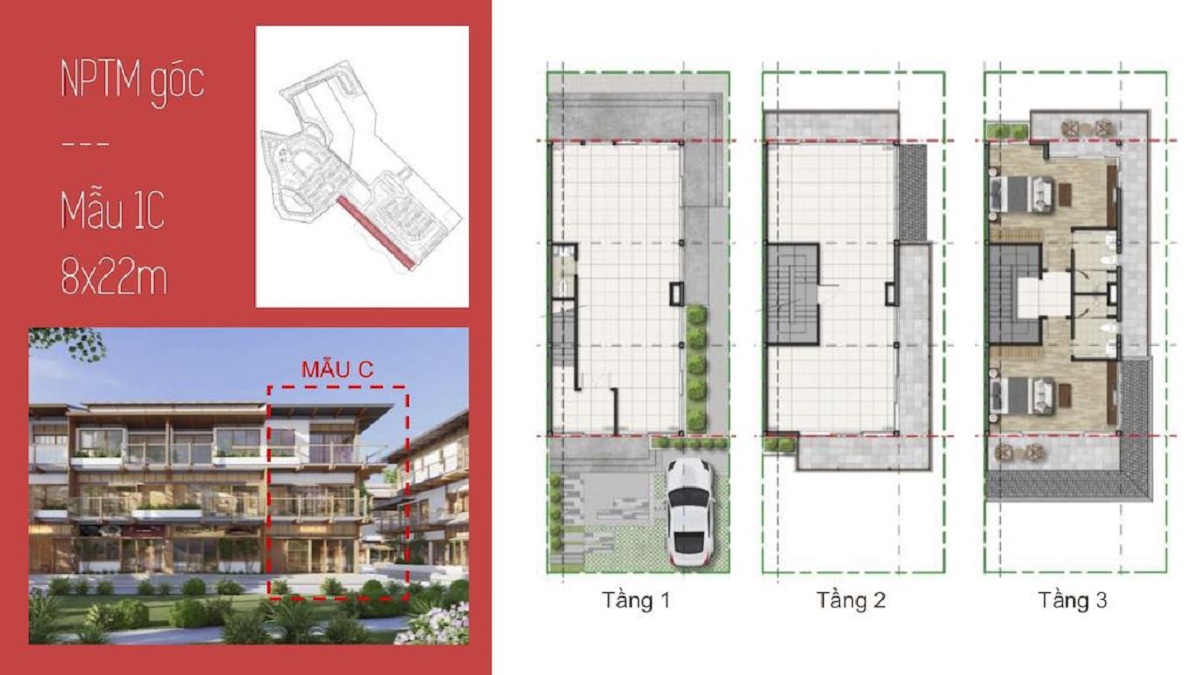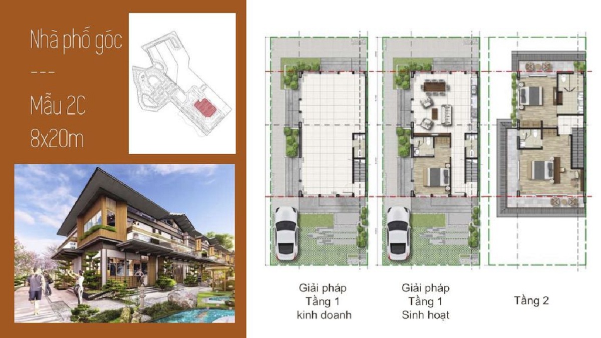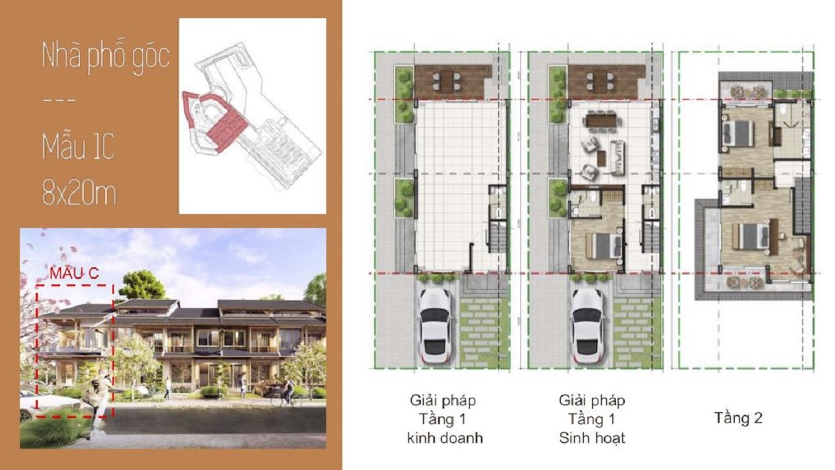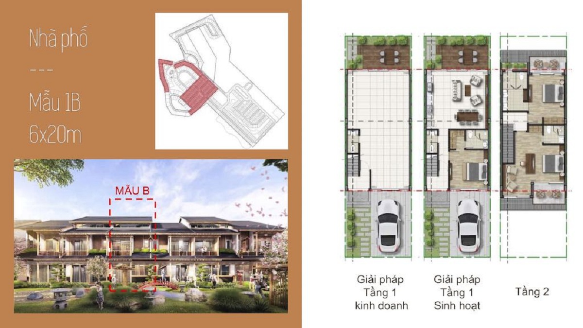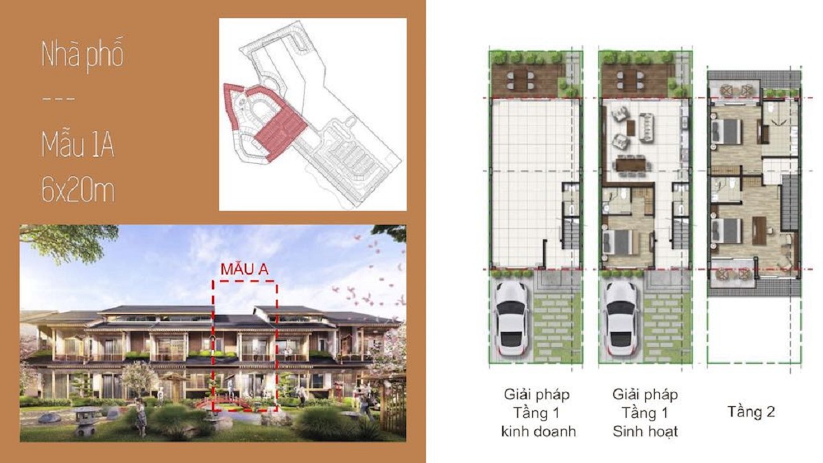 Sản phẩm nhà phố – diện tích 6x20m (1 trệt, 1 lầu) có giá khoảng 8,9 tỷ đồng / căn