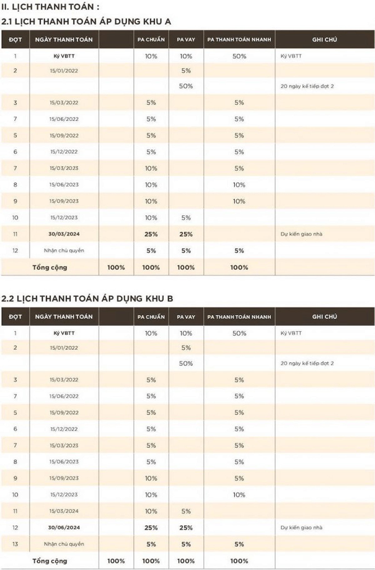 CHÍNH SÁCH BÁN HÀNG & TIẾN ĐỘ THANH TOÁN