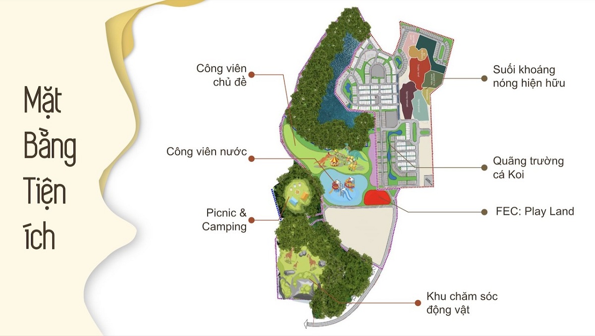 TIỆN ÍCH: 280ha rừng – 11ha suối khoáng nóng – 5ha công viên chủ đề & 4ha công viên nước