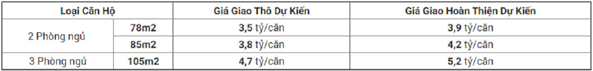 Giá bán dự án kiến từ 45 triệu/m2 – 50 triệu/m2