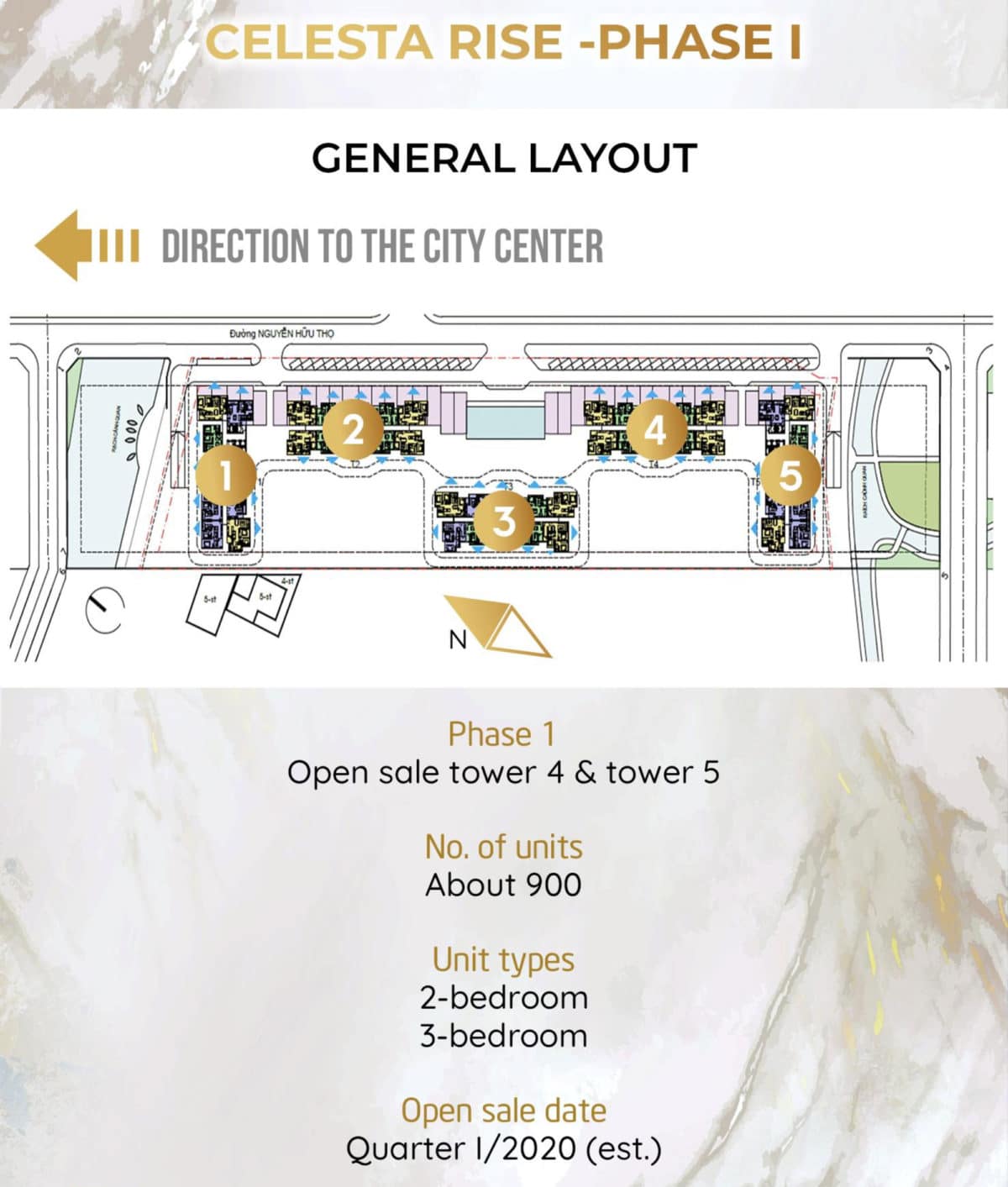 GIAI ĐOẠN 1: Phân khu Celestarise quy mô 2,78 ha với 5 tháp cao 20. Trong đó