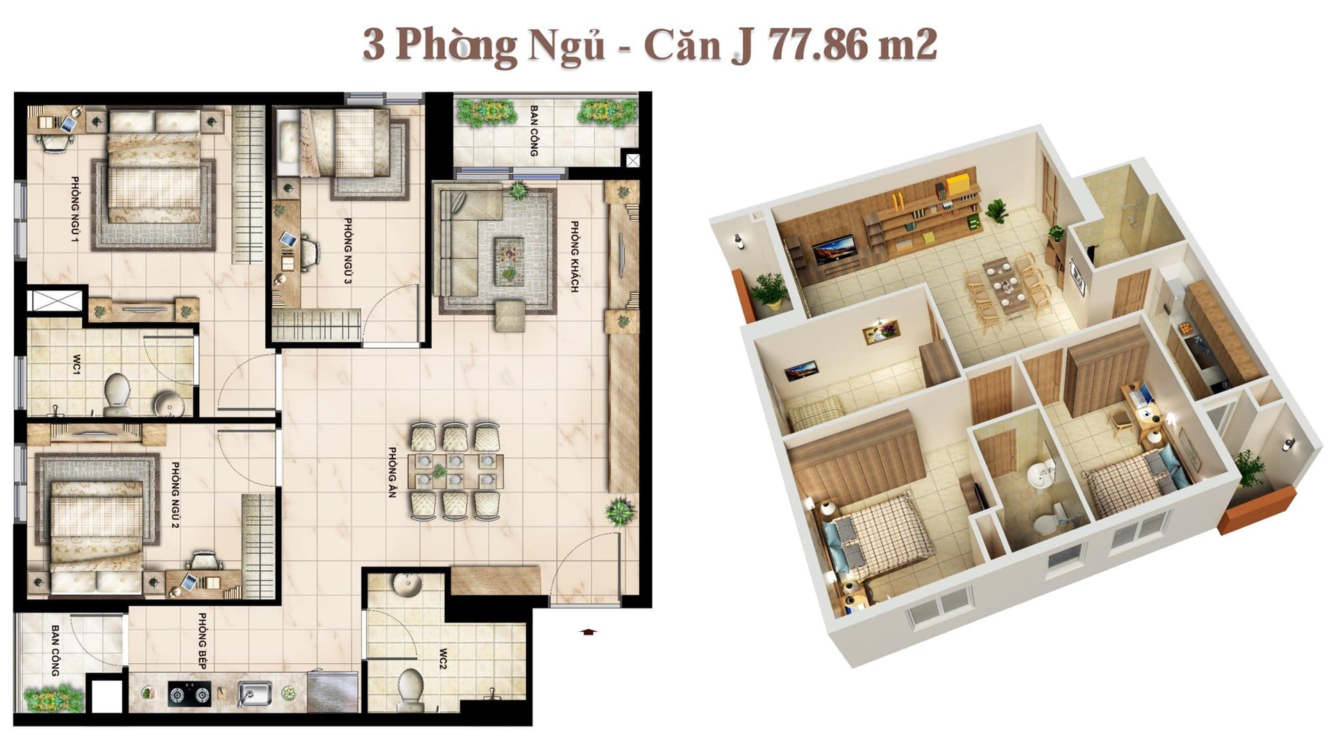 | DIỆN TÍCH CĂN HỘ | Từ 49 – 77 m² |