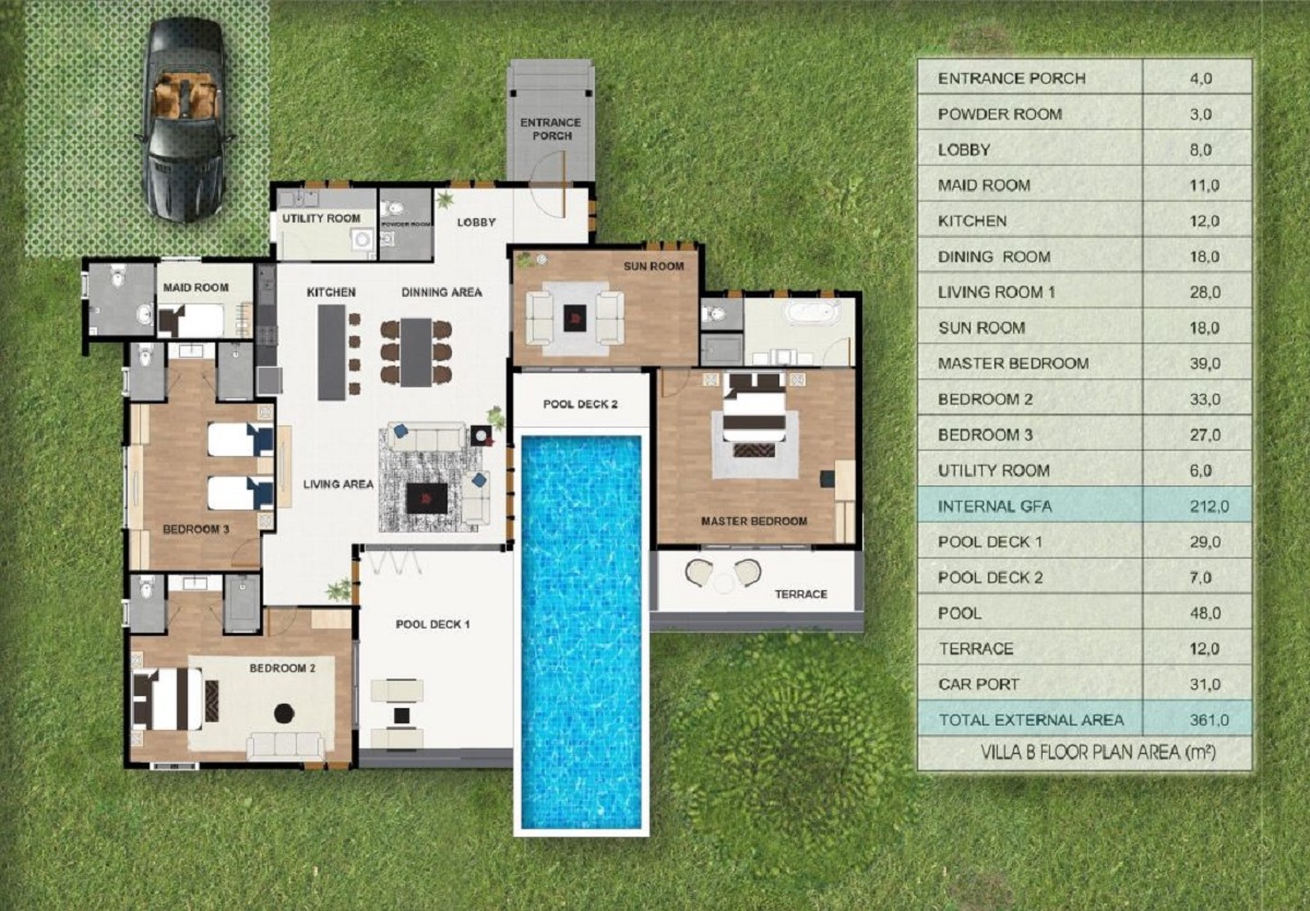 42 biệt thự 3 PN với hồ bơi và sân vườn riêng rộng rãi