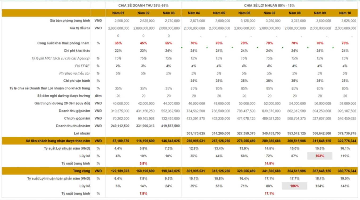 3 năm đầu: Chia sẻ doanh thu 65 – 35 ( đảm bảo doanh thu cho khách hàng trong giai đoạn covid-19 )