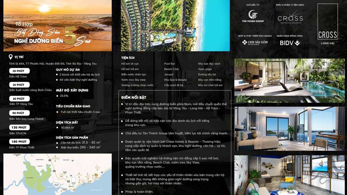 Cross Long Hải là lựa chọn hàng đầu tại thiên đường nghỉ dưỡng đầy tiềm năng Bà Rịa – Vũng Tàu. Với lợi thế liền kề TP. Hồ Chí Minh, nơi đây trở thành lựa chọn hoàn hảo cho giới trung, thượng lưu muốn sở hữu “ngôi nhà thứ hai” ven biển để nghỉ ngơi, hưởng thụ; đồng thời là kênh đầu tư đầy tiềm năng trong lĩnh vực du lịch nghỉ dưỡng đang “bùng nổ” như hiện nay.