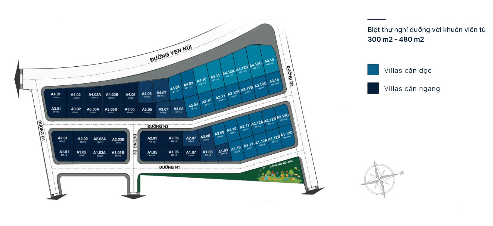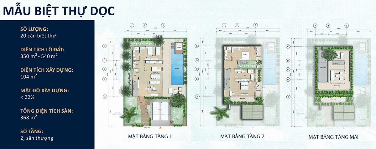 ✅ BIỆT THỰ: Diện tích 295 m2 – 450 m2, thiết kế 1 trệt, 1 lầu.
