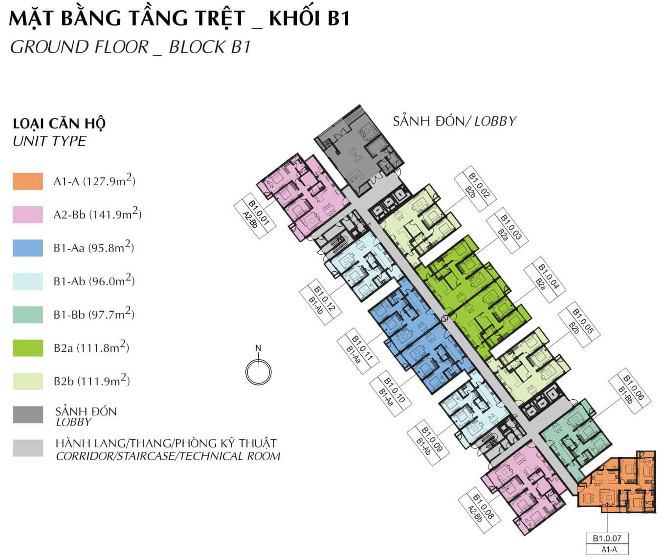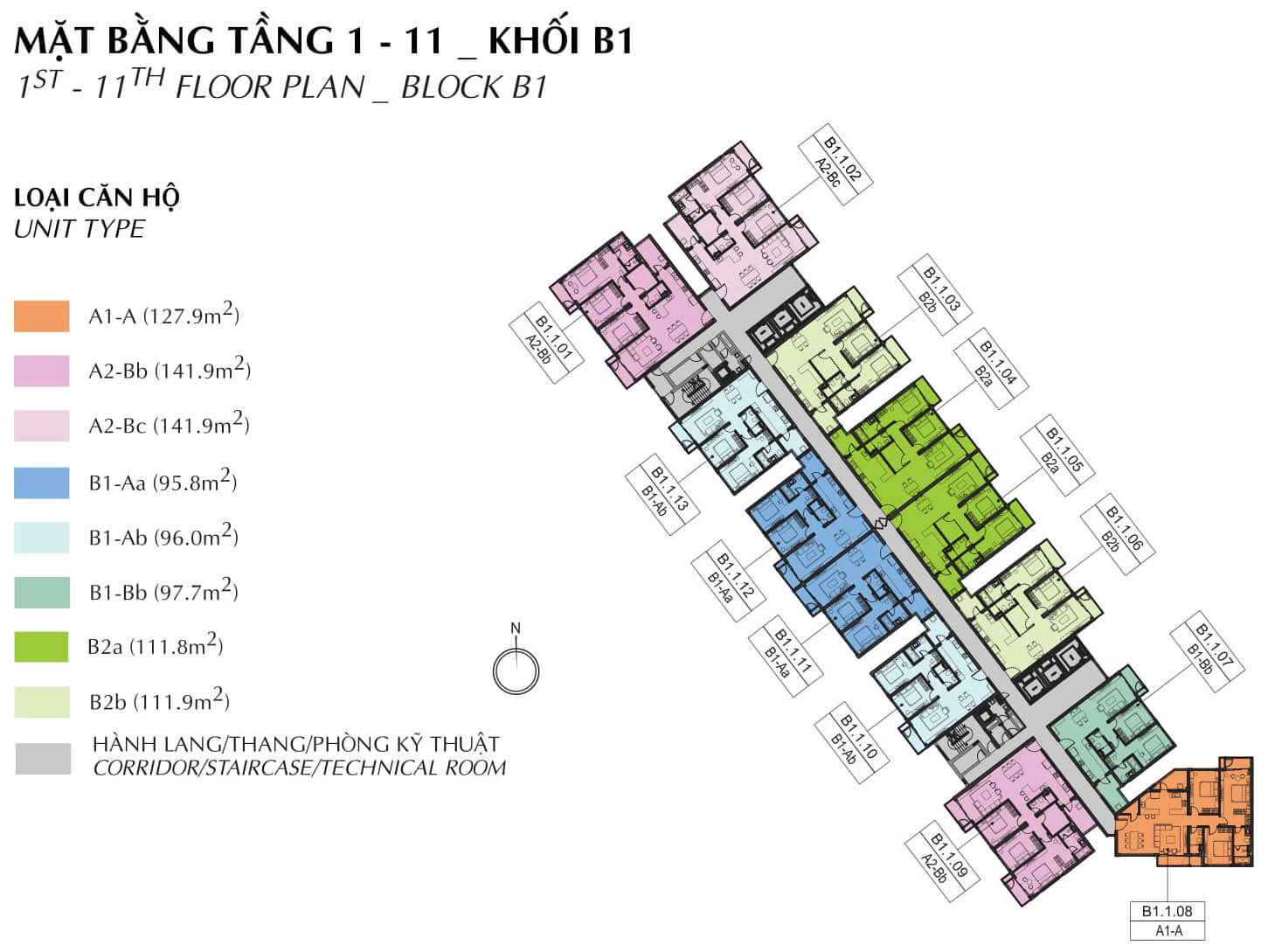 Mặt bằng tầng 1-11 block B1 Brilliant