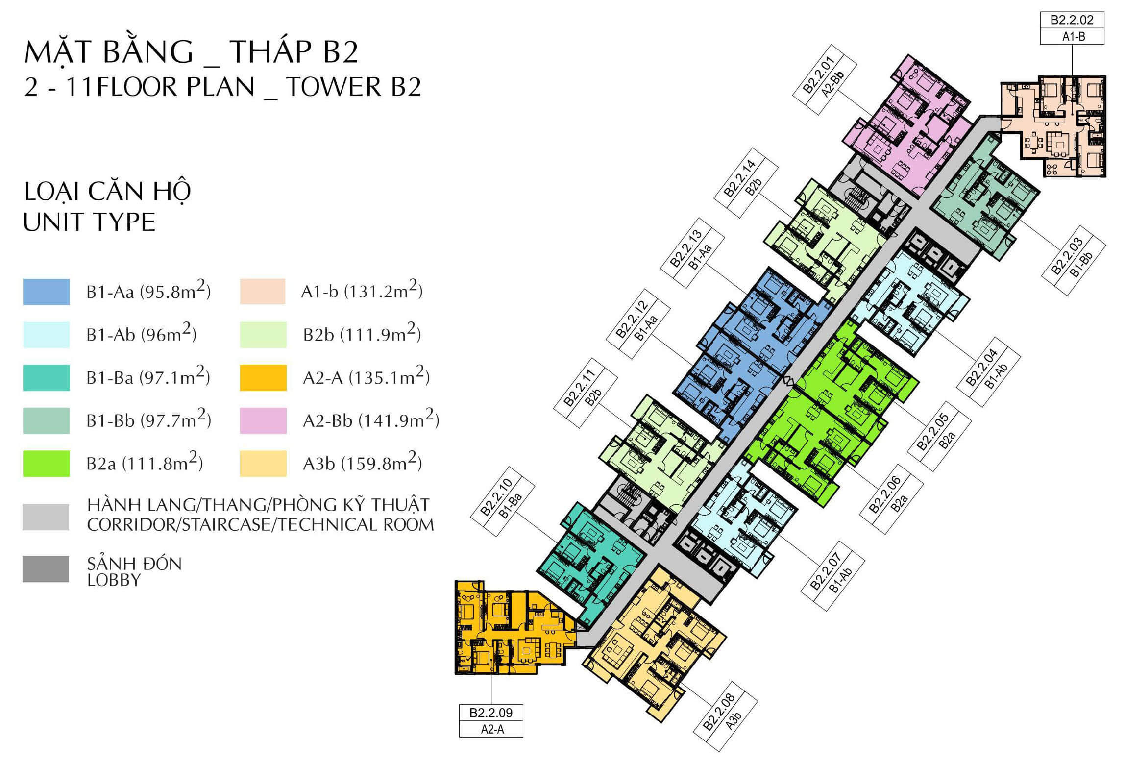 Mặt bằng tầng 1-11 block B2 Brilliant
