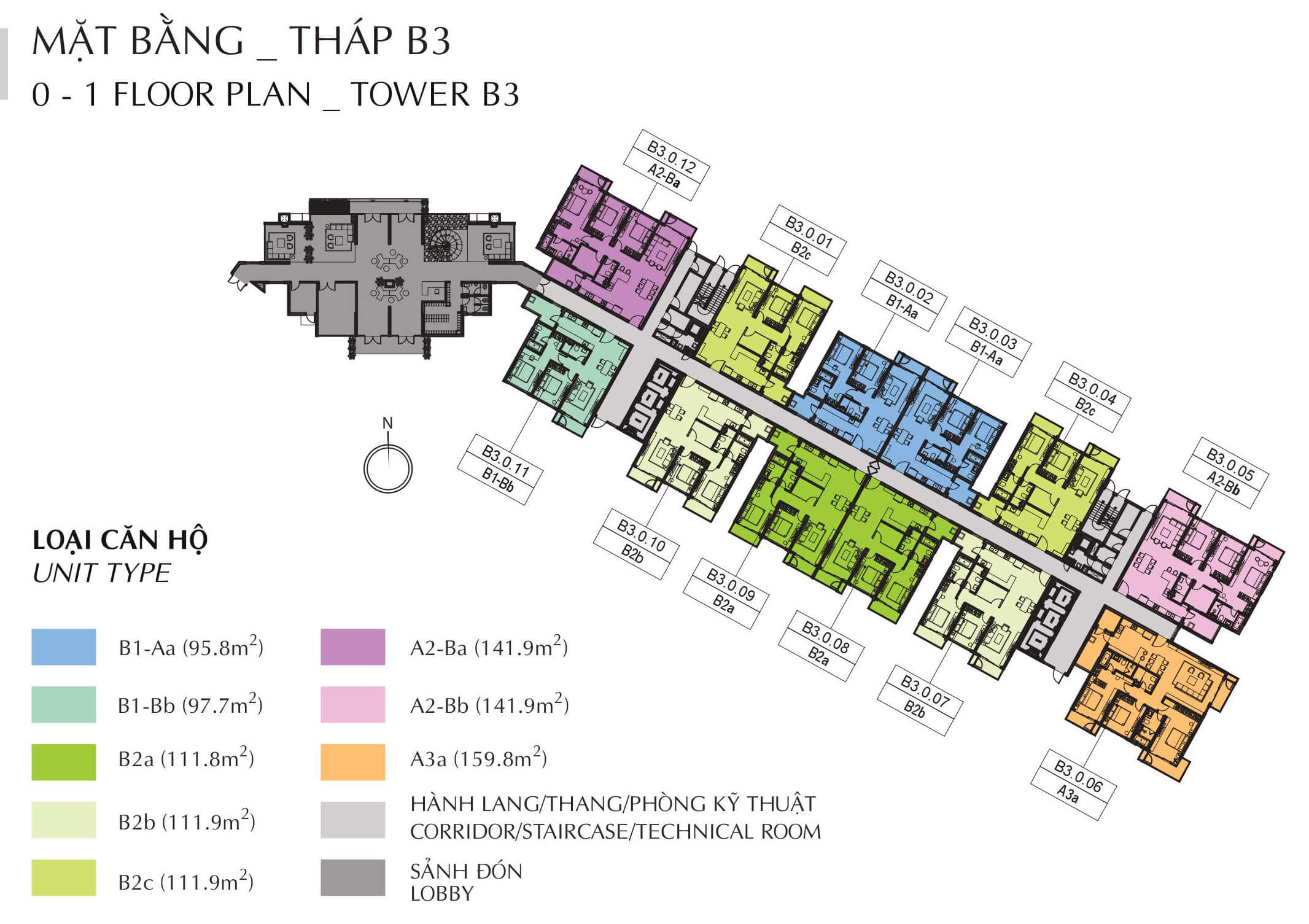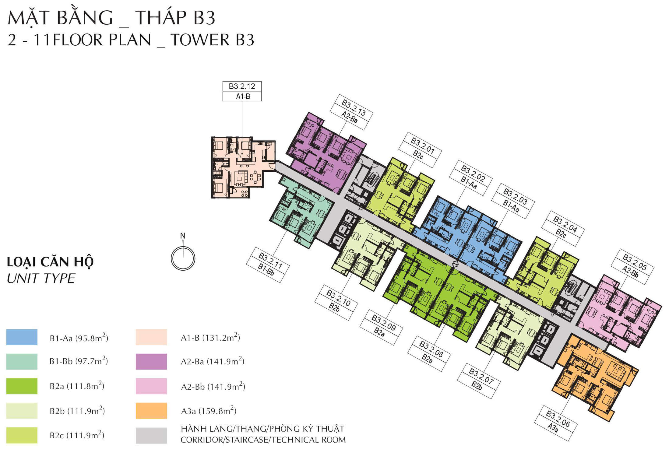 Mặt bằng tầng 1-11 block B3 Brilliant
