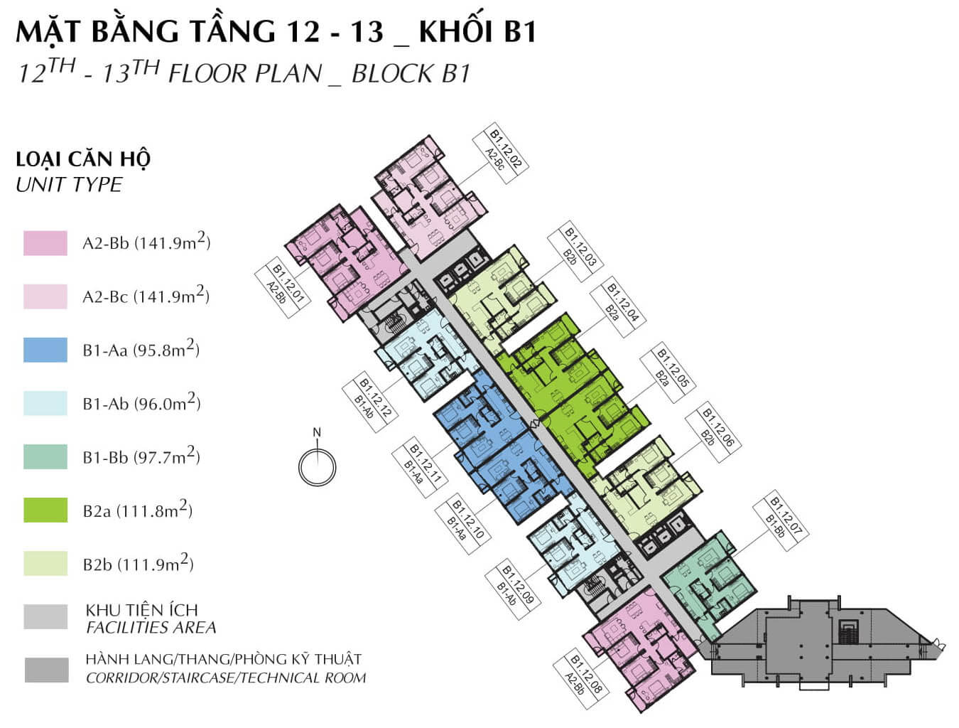 Mặt bằng tầng 12-13 block B1 Brilliant