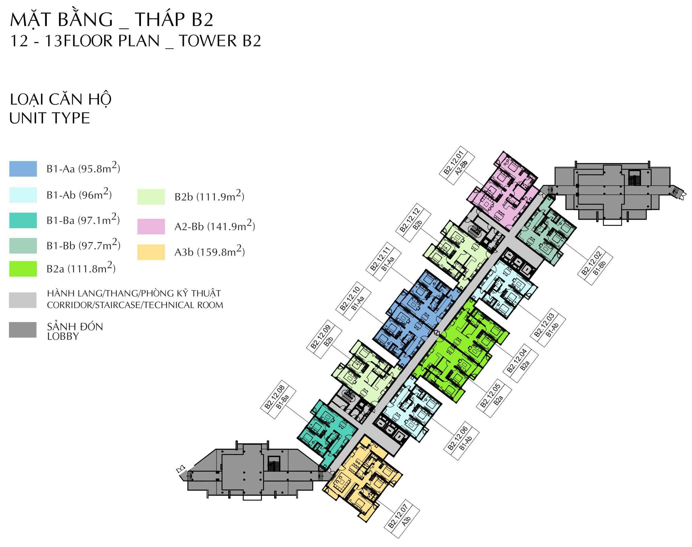 Mặt bằng tầng 12-13 block B2 Brilliant