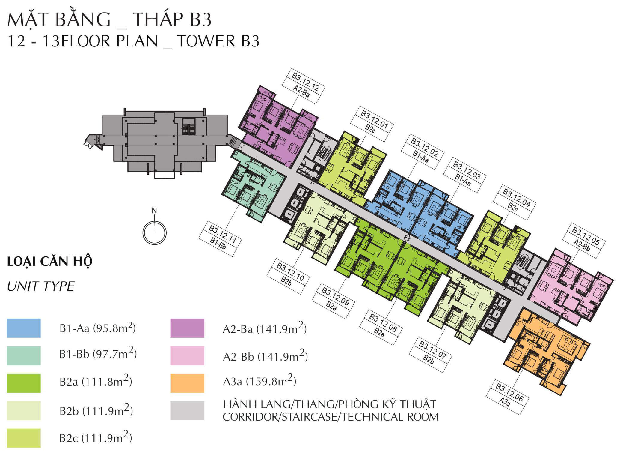 Mặt bằng tầng 12-13 block B3 Brilliant