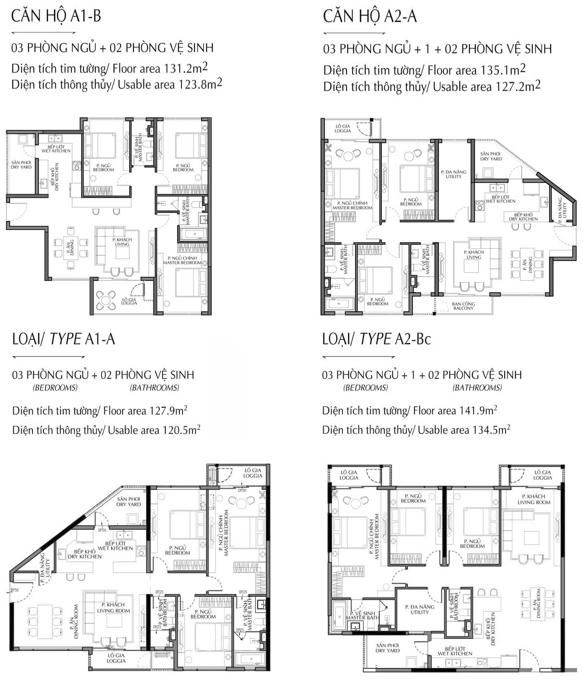 DIỆN TÍCH CĂN HỘ: 90m2 – 160m2