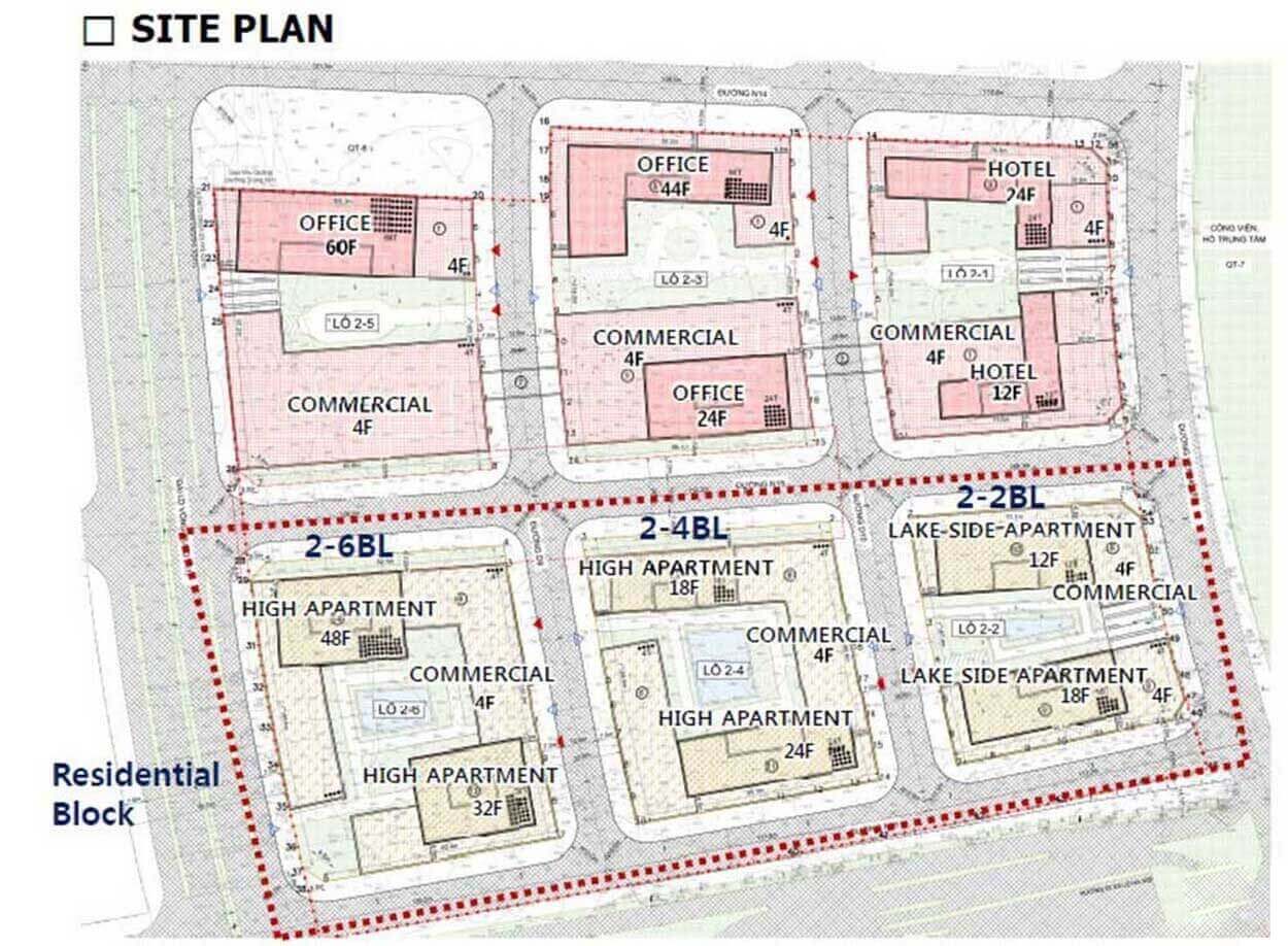 Lô 2-1: khối văn phòng kết hợp thương mại dịch vụ cao từ 4-24 tầng