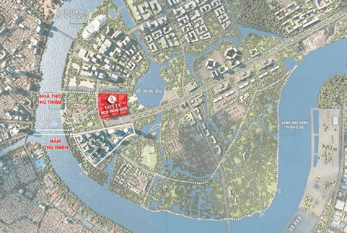 Vị trí dự án Lotte Eco Smart City Thủ Thiêm tọa lạc tại khu chức năng 2A, khu đô thị mới Thủ Thiêm, Quận 2, TP. Hồ Chí Minh ( nay là TP. Thủ Đức ). Tọa lạc tại bán đảo Thủ Thiêm, nơi được quy hoạch là trung tâm tài chính mới của TP. Hồ Chí Minh, dự án thừa hưởng hệ thống hạ tầng giao thông đồng bộ, cư dân có thể dễ dàng di chuyển thông qua các tuyến đường huyết mạch như : Hầm Thủ Thiêm – Xa Lộ Hà Nội – Cầu Thủ Thiêm 1 – Cầu Thủ Thiêm 2 – Mai Chí Thọ…đến các tiện ích trong khu vực.