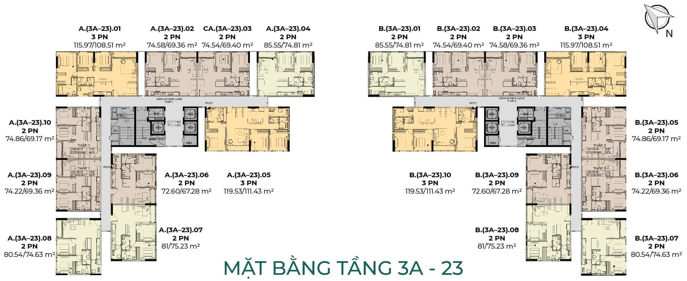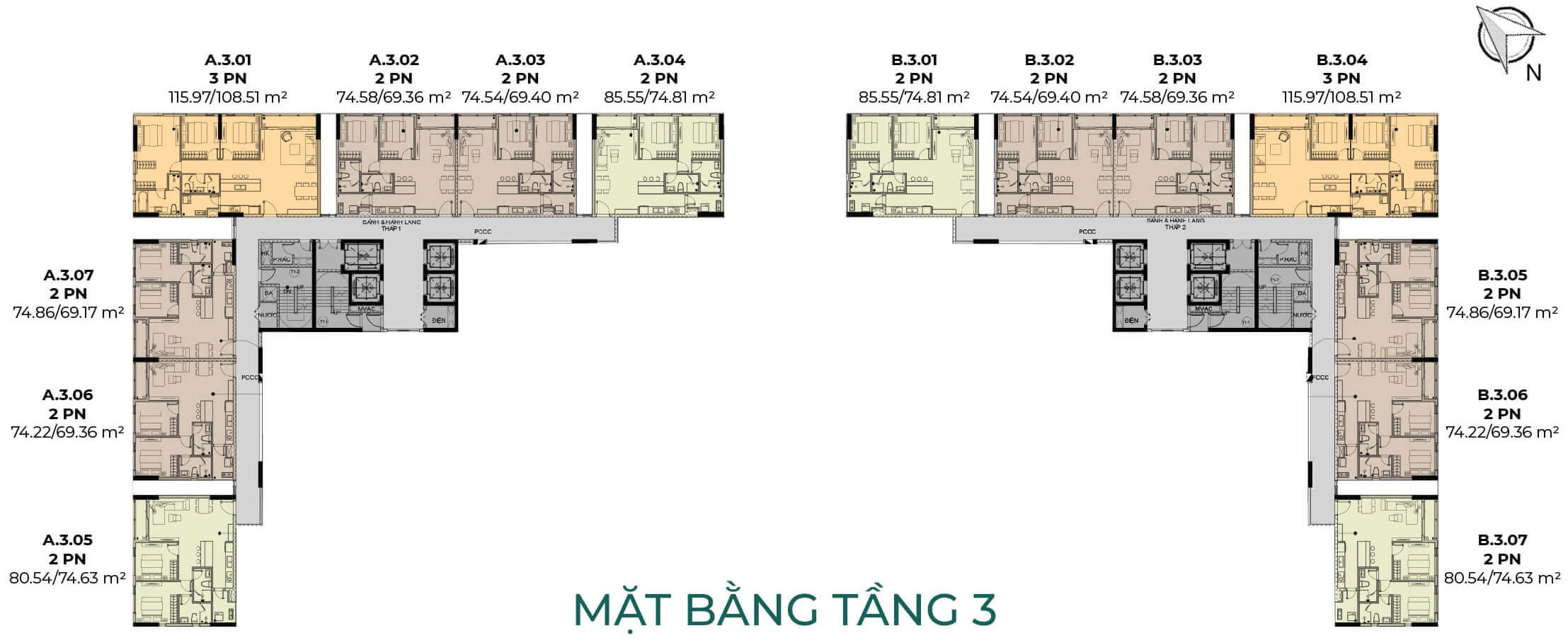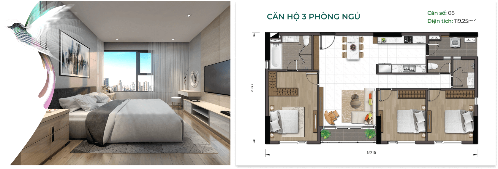 Căn 3 phòng ngủ: 115m2 – 119m2 ( 84 căn )