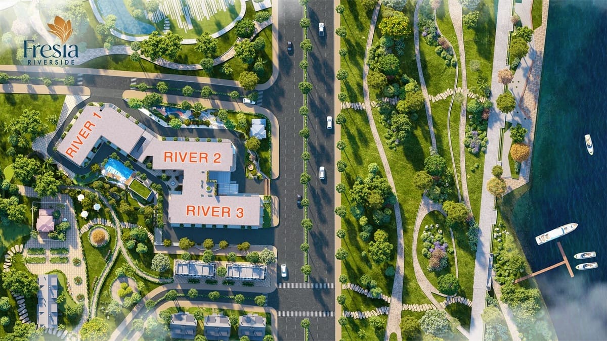 Fresia Riverside được quy hoạch trên quỹ đất rộng gần 7.900 m² với ba tòa tháp River 1, River 2 và River 3. Tổng thể dự án được thiết kế theo hướng hiện đại, ưu tiên không gian xanh và sự thông thoáng. Mật độ xây dựng chỉ khoảng 32%, phần lớn diện tích còn lại dành cho công viên nội khu, đường dạo bộ và tiện ích phục vụ cư dân.