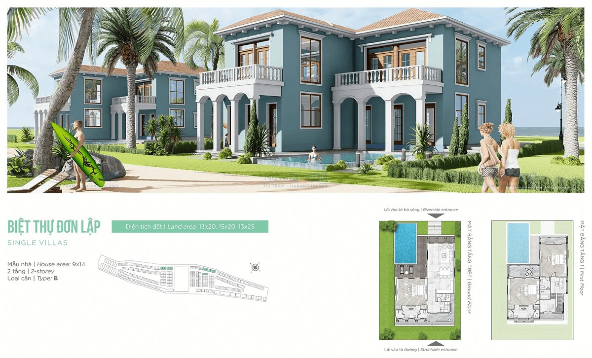 Biệt thự đơn lập Habana Island View Sông (260 – 300 m2): 30 – 33 TỶ/CĂN