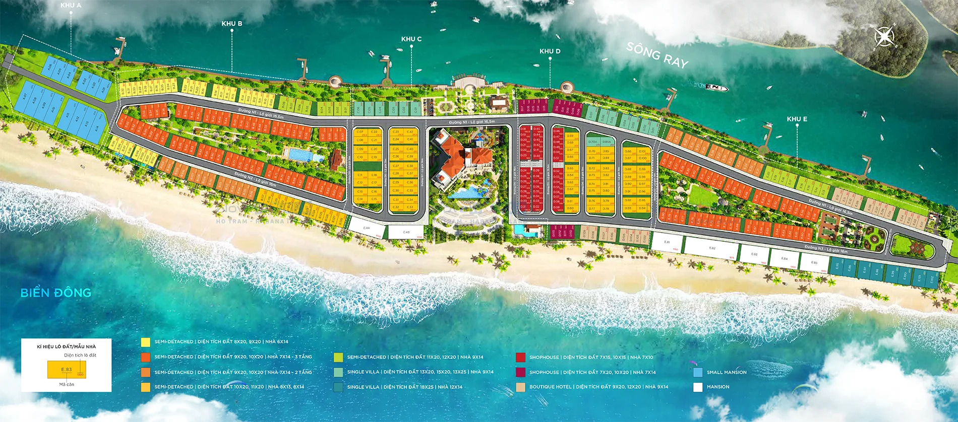 DIỆN TÍCH DỰ ÁN: 20,4 ha với 1,5km bờ biển & 1,5km ven sông
