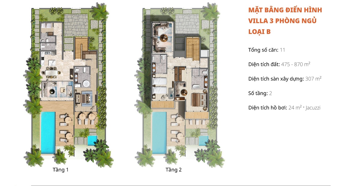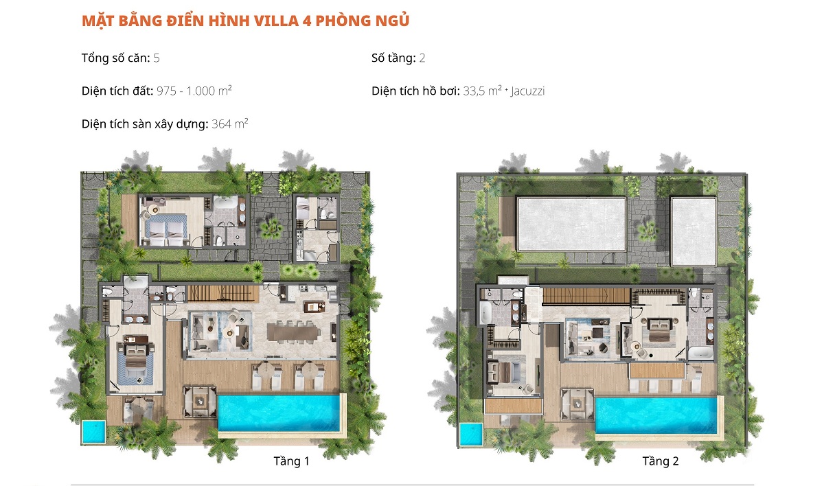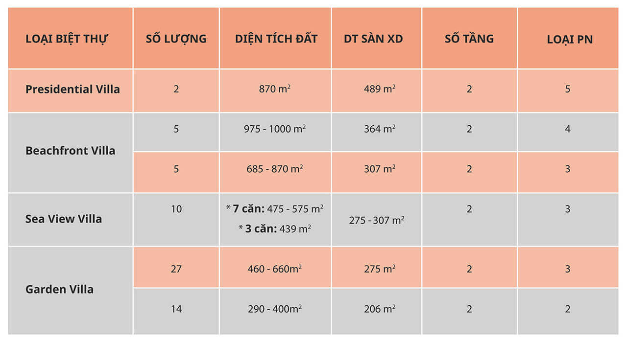 Beachfront Villa: 3PN có 5 căn với DT đất: 685 – 870m2 – 4PN có 5 căn với DT đất: 975 – 1000m2