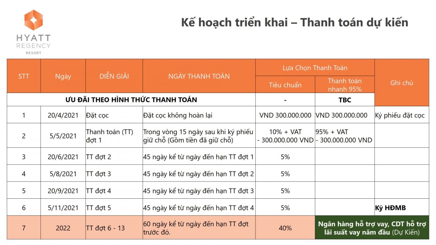 TIẾN ĐỘ THANH TOÁN DỰ ÁN HYATT HỒ TRÀM