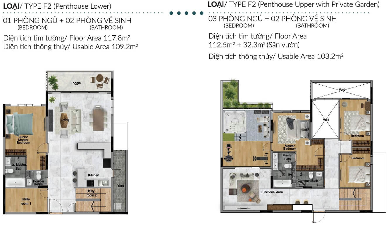 Căn Penthouse diện tích 199,3 – 270,5 m2