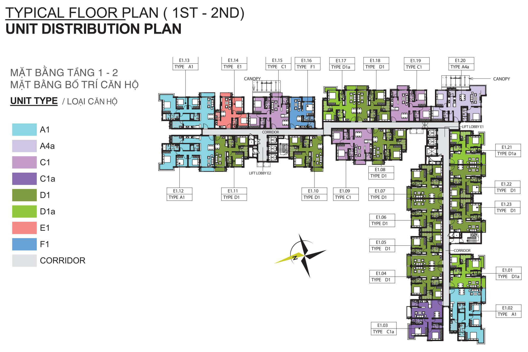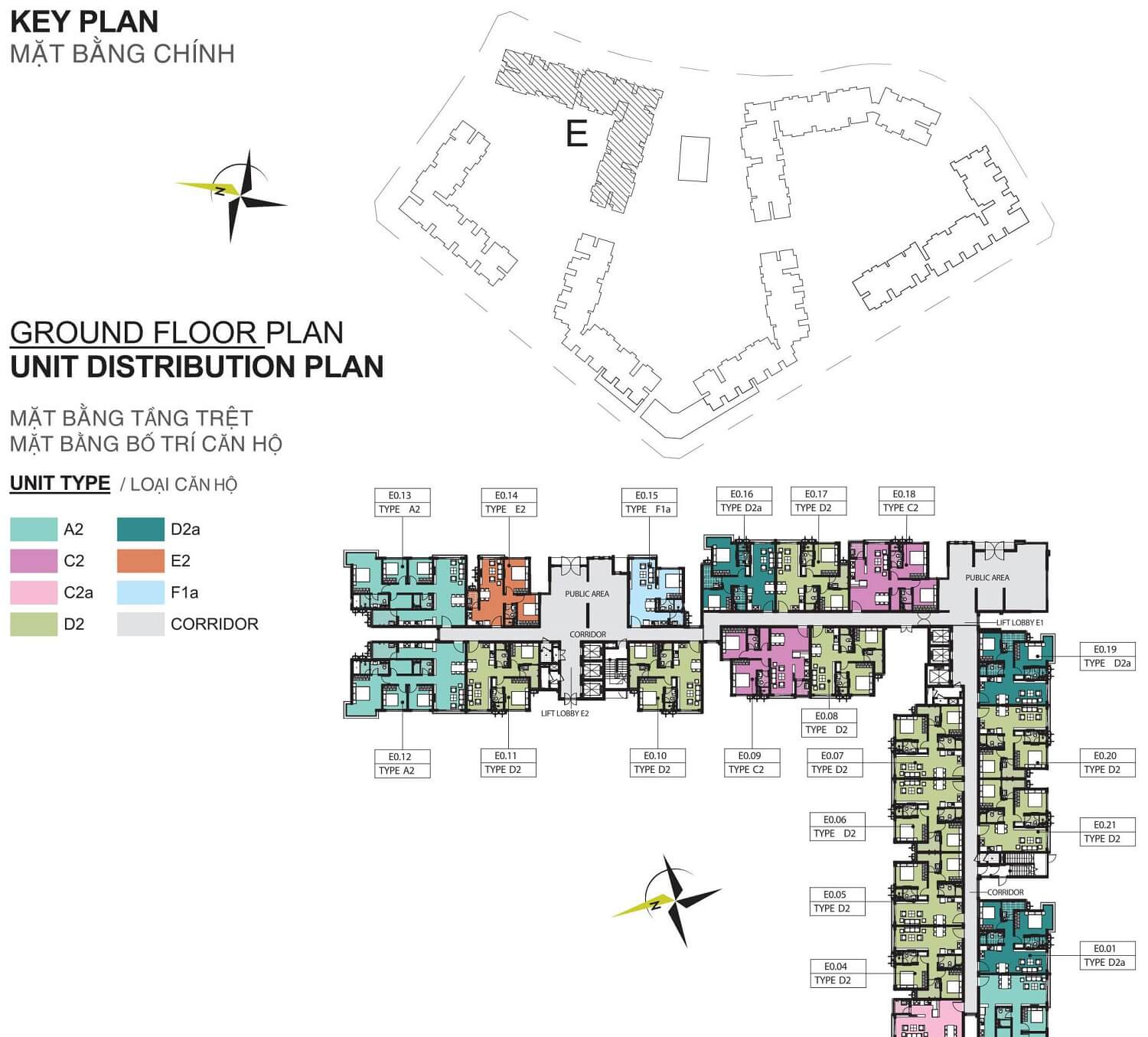 Mặt bằng block E chung cư Emerald Celadon được thiết kế hiện đại, các căn hộ vuông vắn hợp phong thủy, đem lại sự vững chãi, bền vững trường tồn dành cho gia chủ.