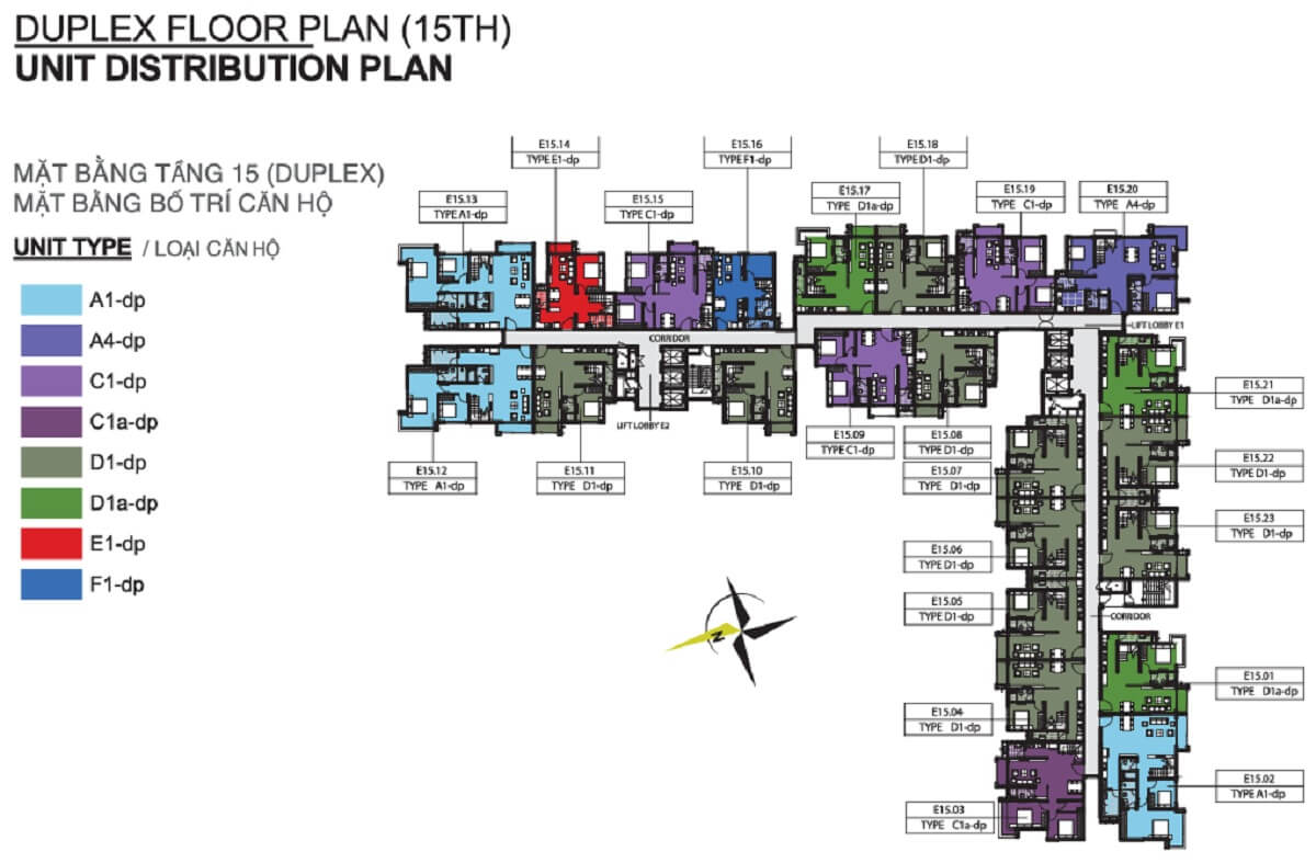 Block E thiết kế 1 tầng hầm & 15 tầng cao