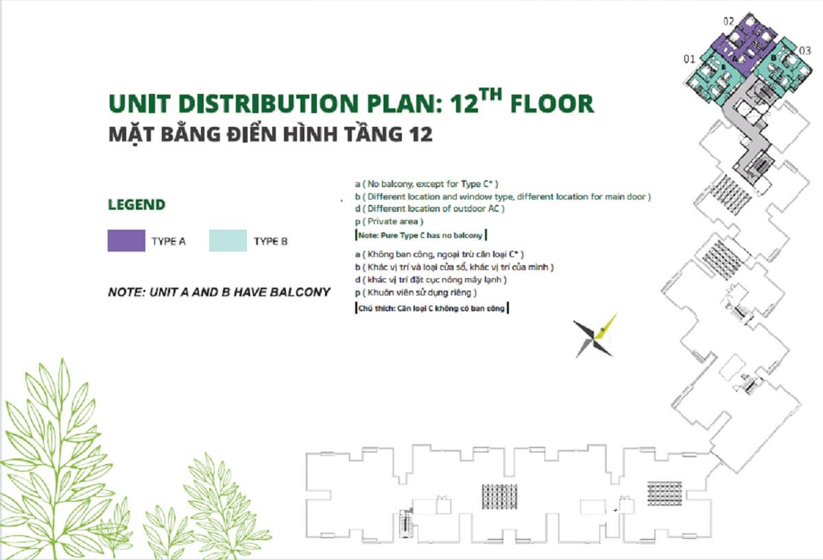 Thiết kế 32 căn/sàn. Chia làm 3 đơn nguyên