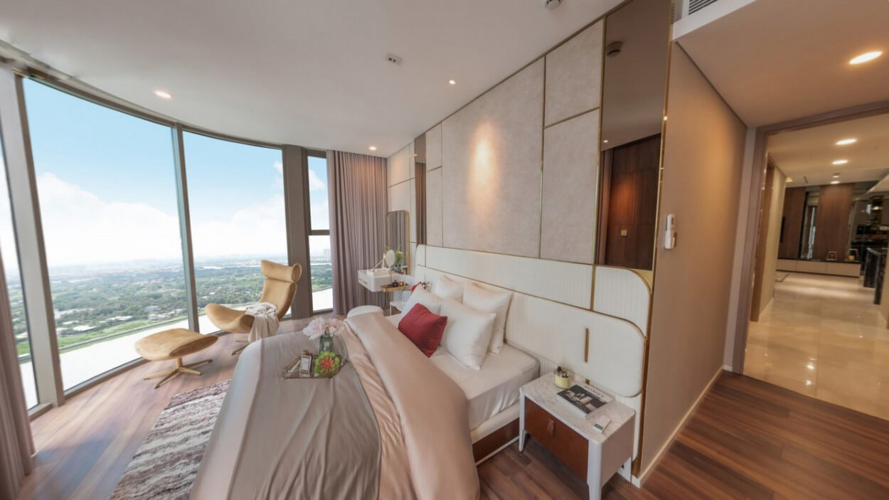 ► 3 mặt view sông Sài Gòn Vĩnh Viễn: View Panorama đẳng cấp với thiết kế cửa sổ và ban công full kính từ sàn đến trần.