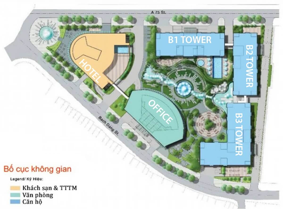 1 tòa khách sạn, 1 tòa văn phòng, 3 tòa căn hộ