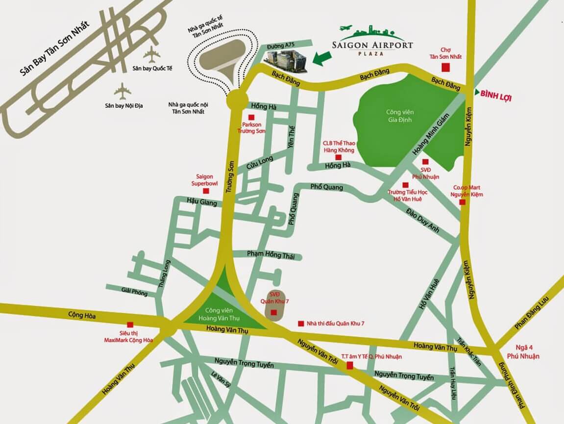 Sài Gòn Airport Plaza tọa lạc tại số 1 Bạch Đằng, Phường 2, Quận Tân Bình, Thành phố Hồ Chí Minh – cửa ngõ giao thương chiến lược của thành phố. Cư dân dễ dàng kết nối đến các tiện ích trong khu vực cũng như đi vào trung tâm thành phố.