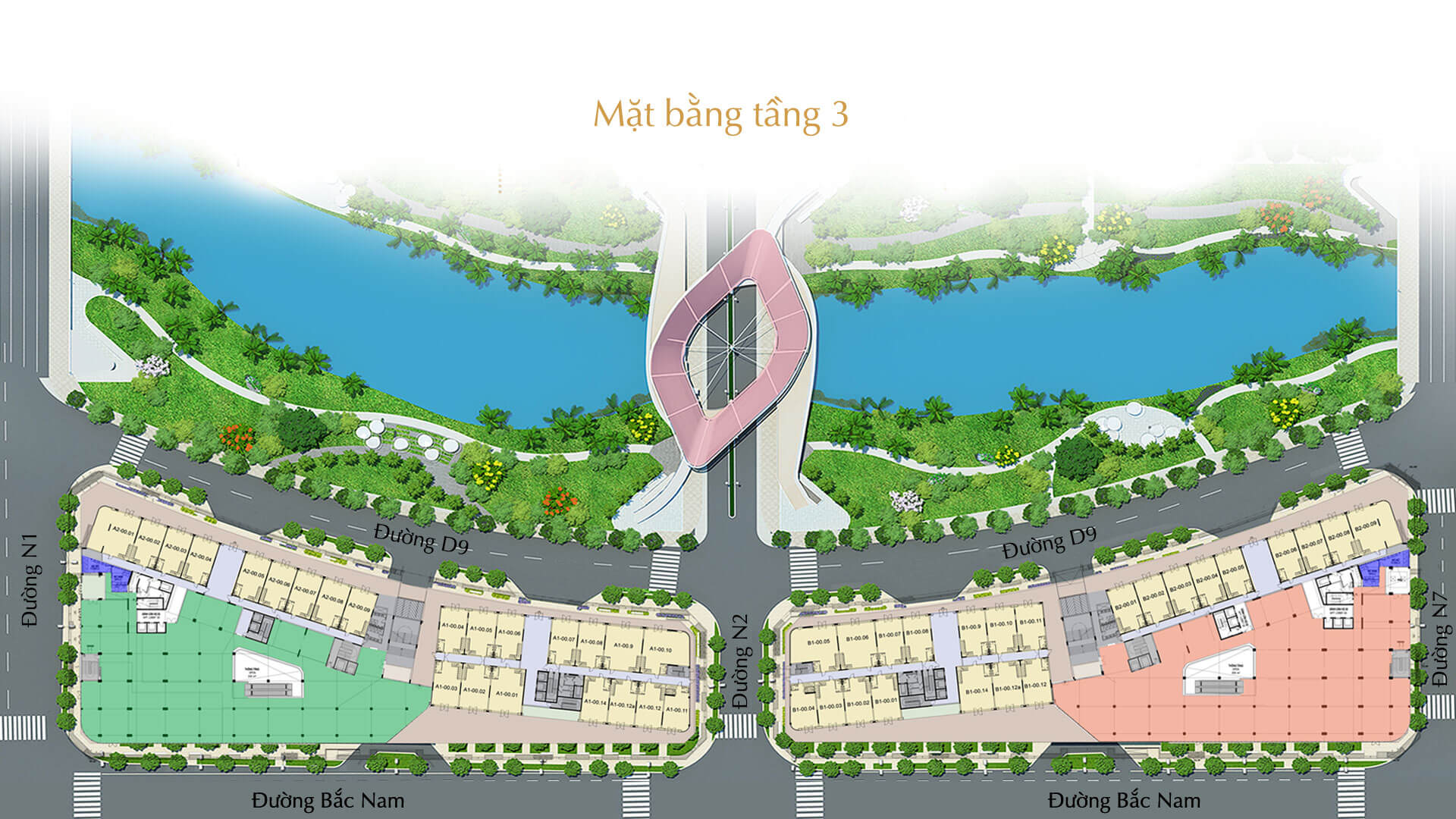 Tầng 1-3: Khối đế thương mại. Tầng 4-12: Căn hộ