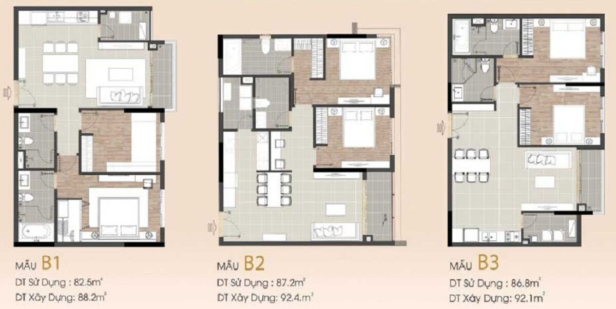 Căn hộ 2 phòng ngủ diện tích: 88.2 – 92.4m2