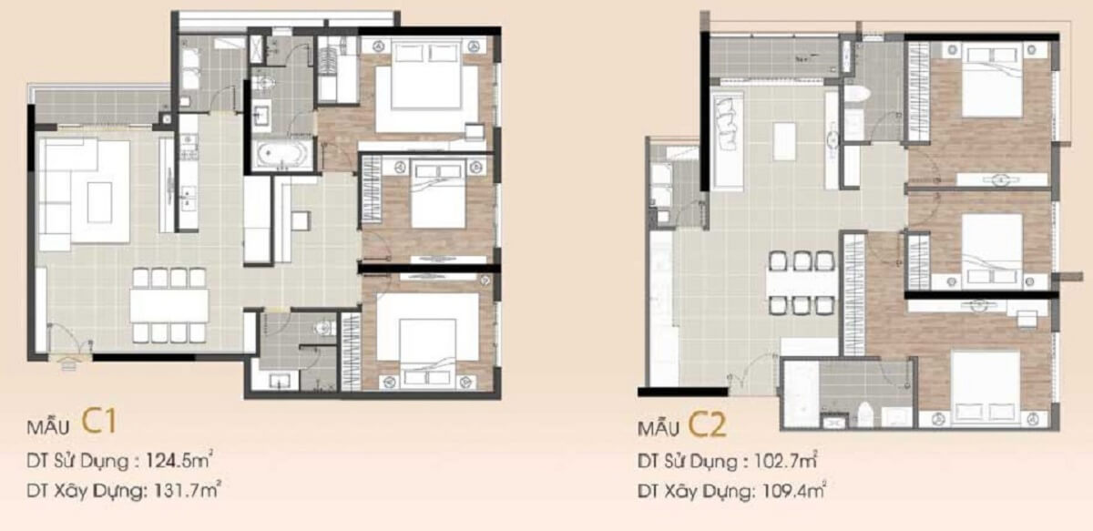 Thiết kế căn hộ Sarimi 3 phòng ngủ mẫu C1-C2