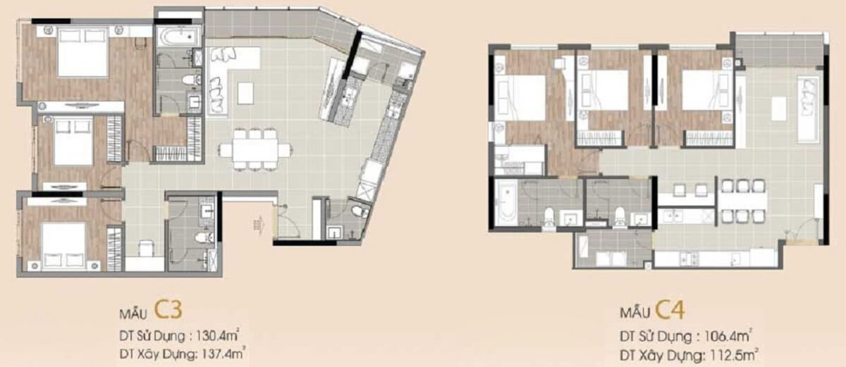 Căn hộ 3 phòng ngủ diện tích: 109.4 – 137.4m2