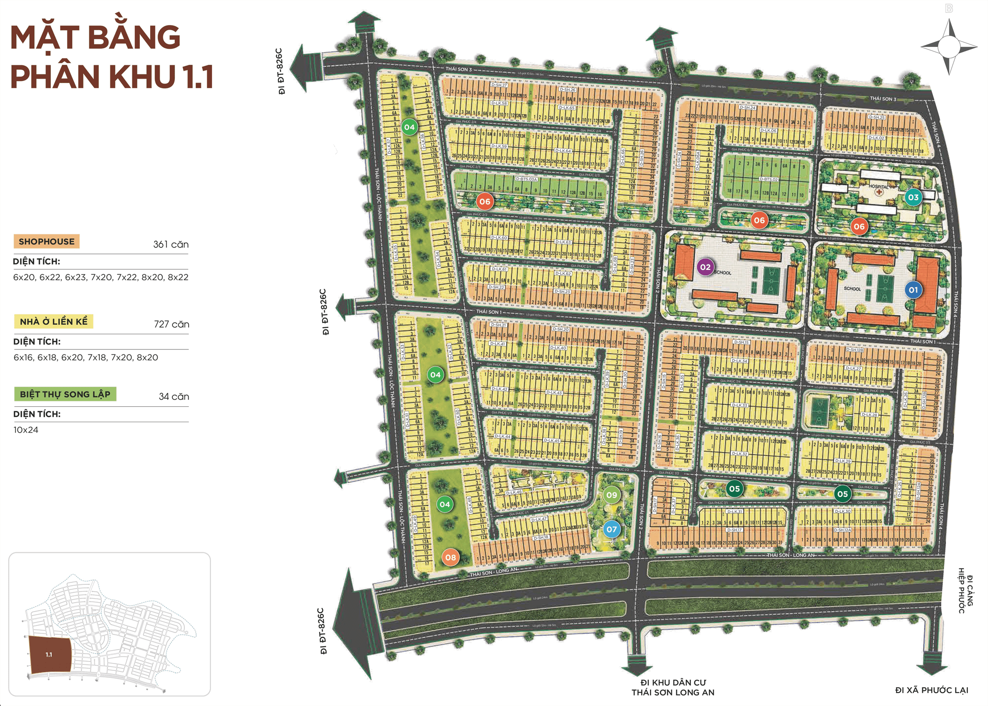 Giai đoạn 1 của dự án có quy mô 69,38ha gồm 2.402 căn, trong phân kỳ 1.1 có quy mô 32,5ha gồm 1.122 căn Shophouse, liền kề, biệt thự song lập