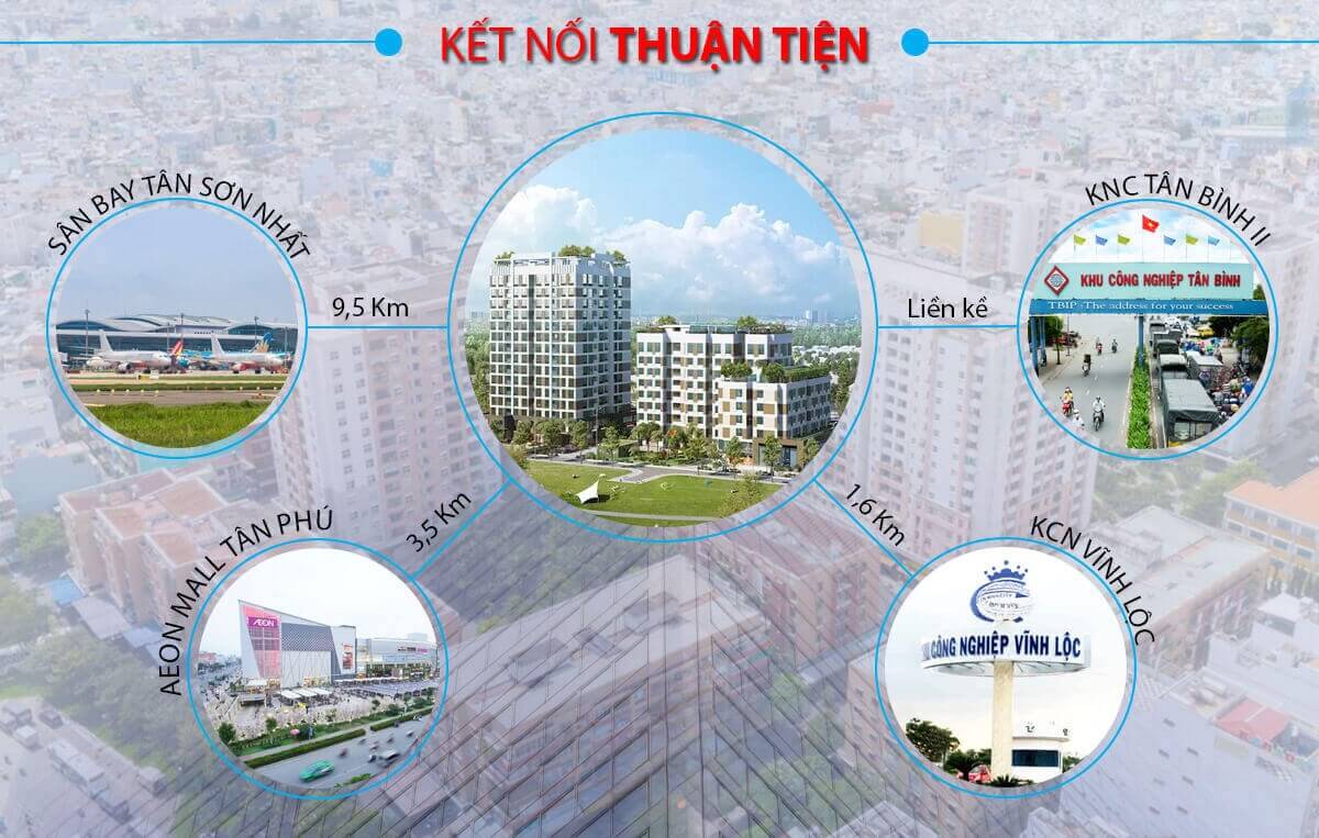 3.5km: Aeon Mall Tân Phú – 9.5 Km: Sân bay Tân Sơn Nhất