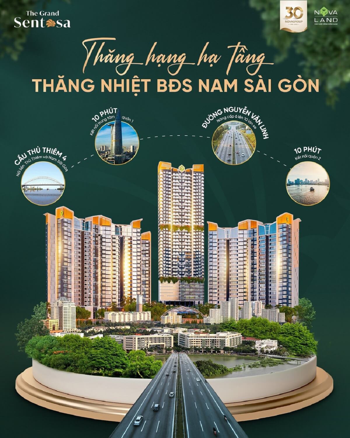 Grand Sentosa Novaland, với phong cách thiết kế sang trọng cùng hệ thống tiện ích đặc quyền như bến du thuyền riêng tư, phố đi bộ dọc sông, quảng trường giải trí đến những trải nghiệm đậm chất Singapore giữa Sài Gòn như mật độ xanh 71%, bến Clarke sôi động, chuỗi trung tâm mua sắm hiện đại và trị liệu sức khỏe cao cấp..