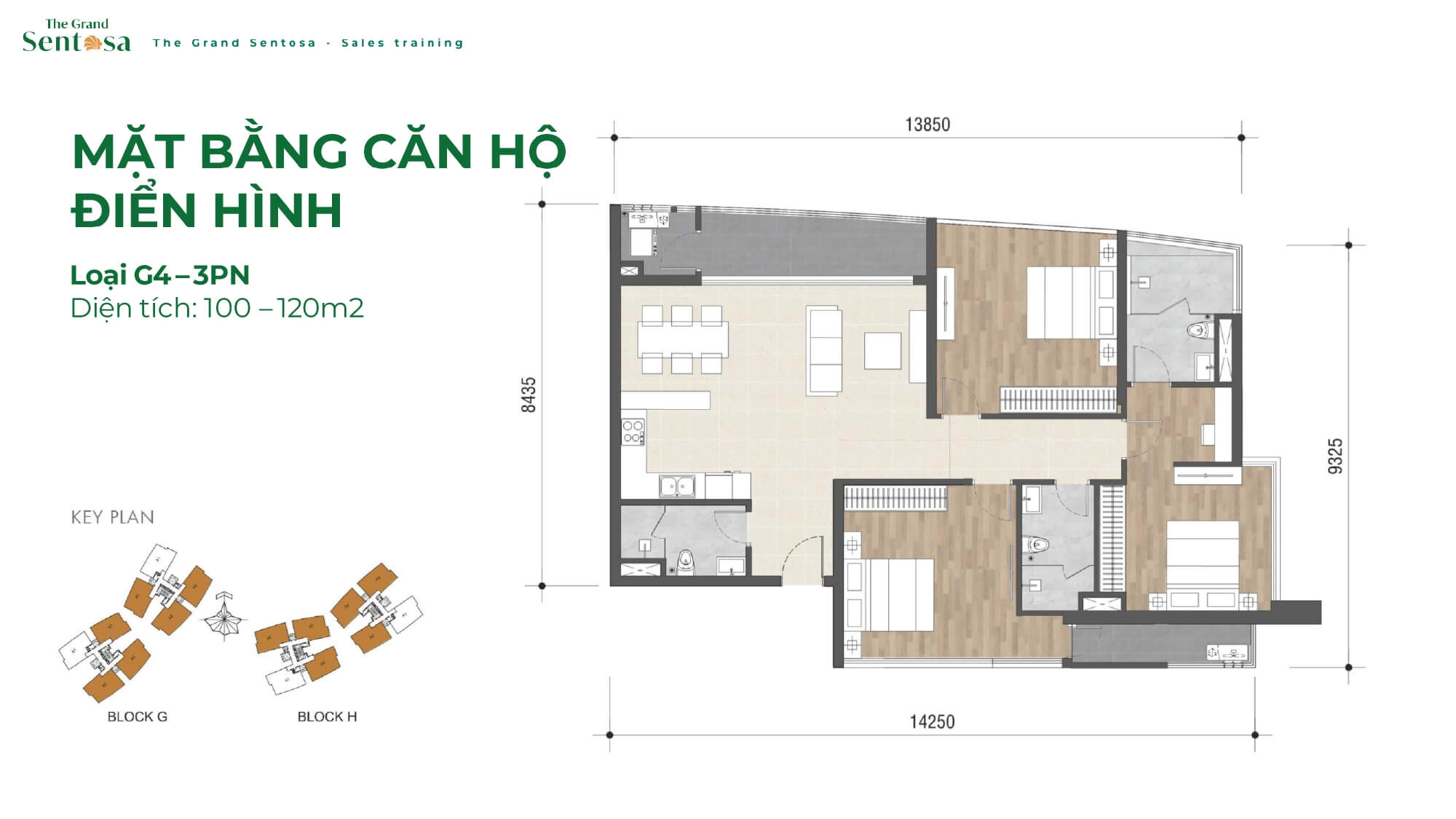 Các căn 3 phòng ngủ có diện tích từ 100m2 – 120m2