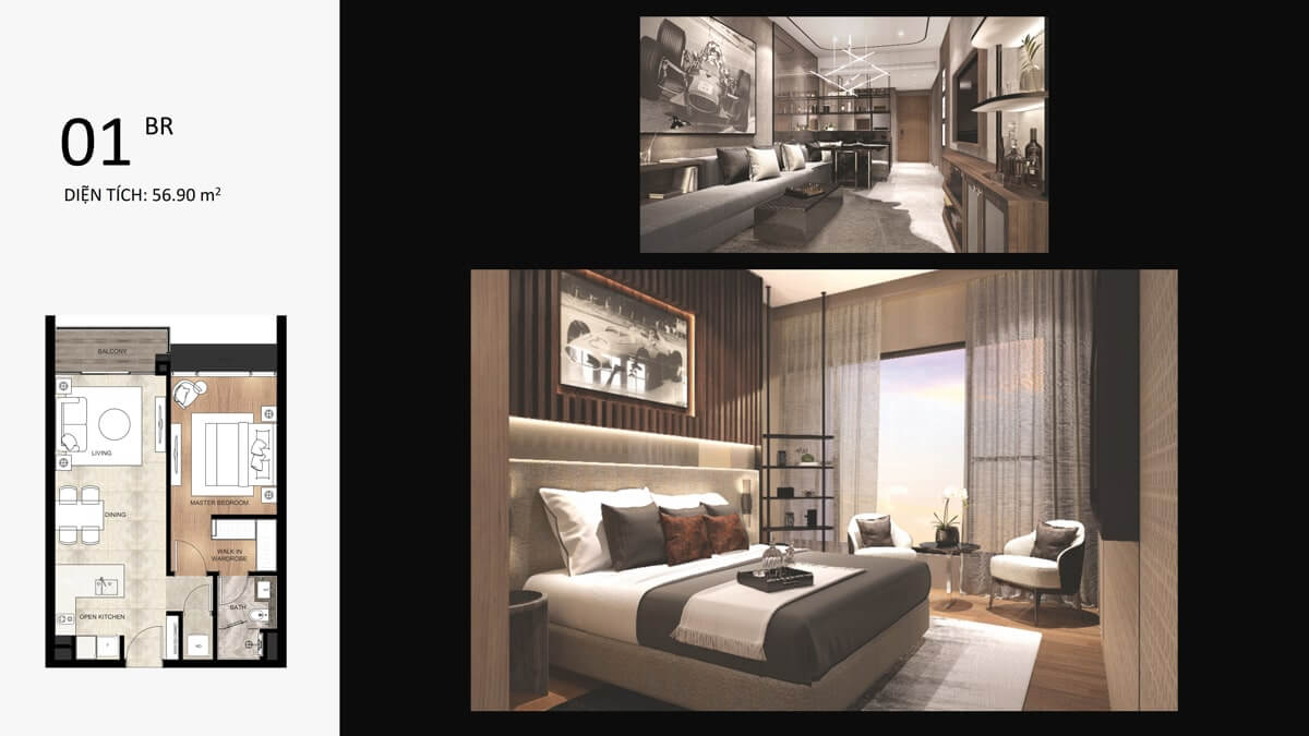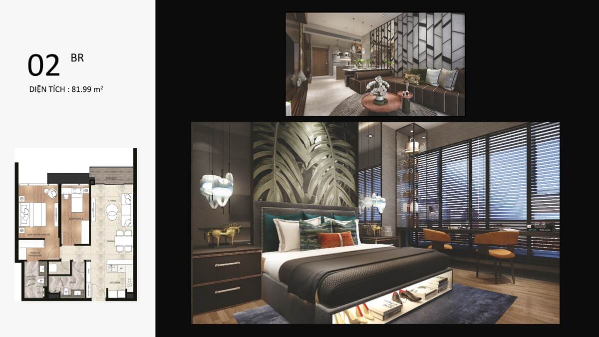 Căn 1 phòng ngủ: 54m2 – 59m2 – Căn 2 phòng ngủ: 77m2 – 82m2