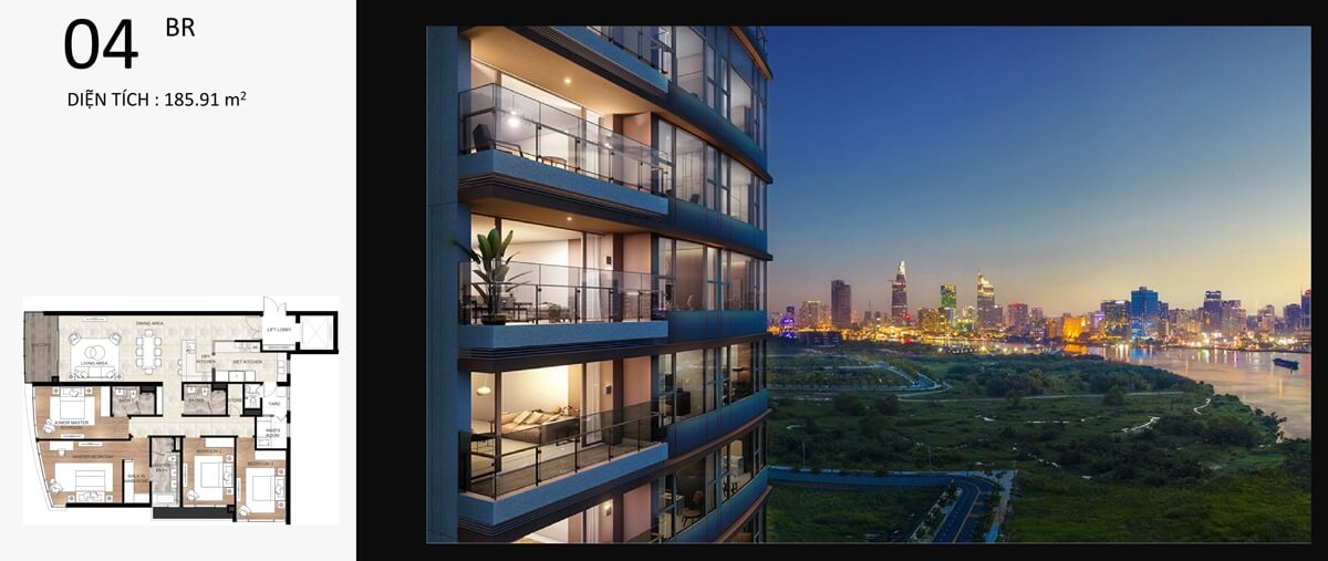 DIỆN TÍCH CĂN HỘ: 54m2 – 300m2 ( 1 – 4 phòng ngủ )