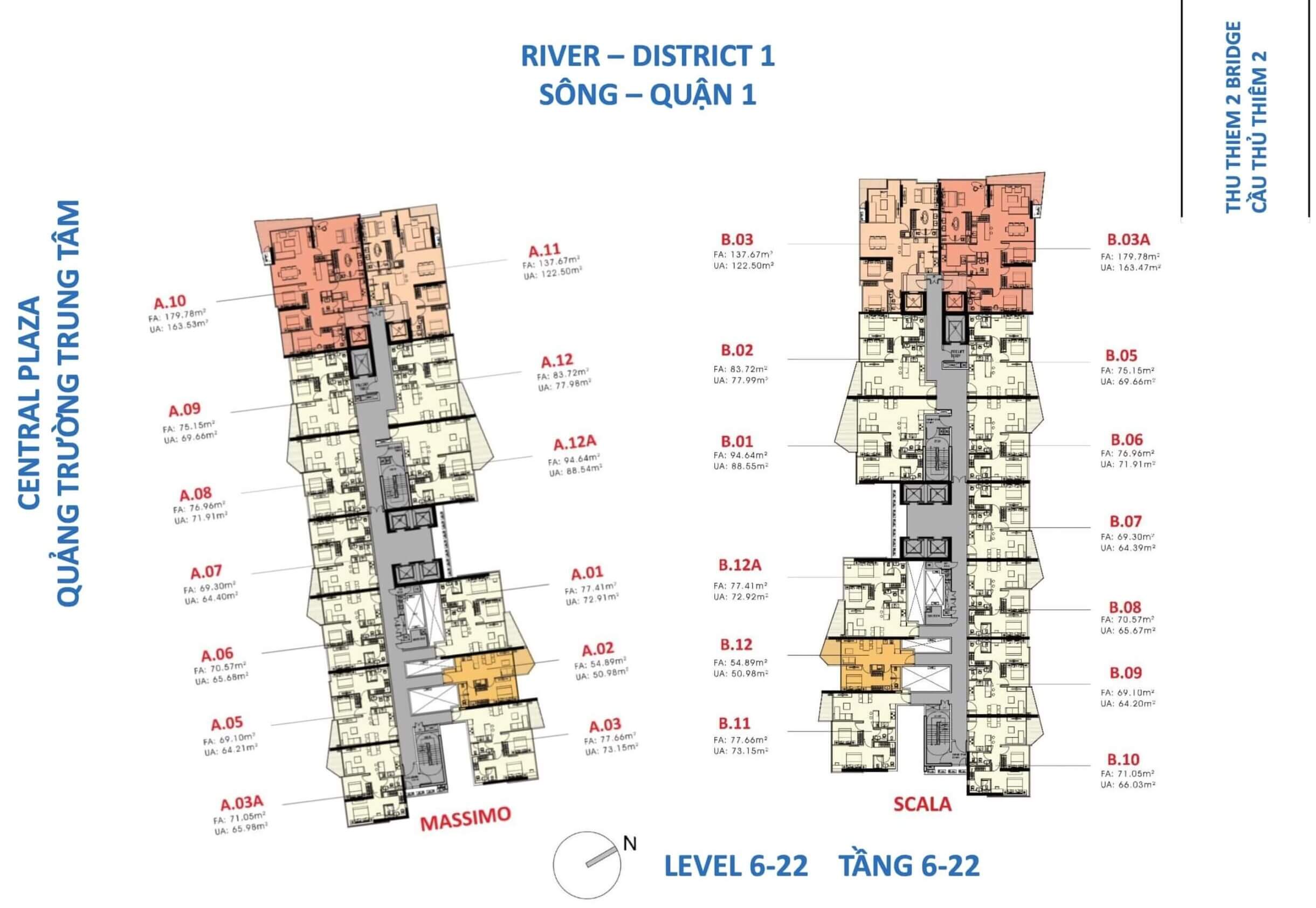 Mặt bằng chi tiết tầng 6 – 22