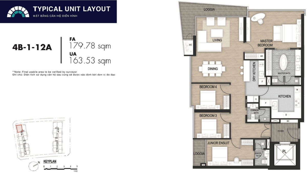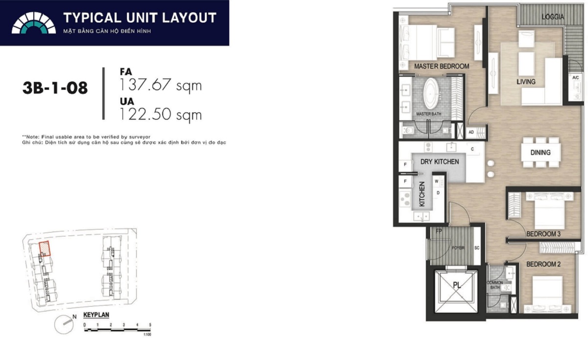 Diện tích căn 3 PN: 120 m2