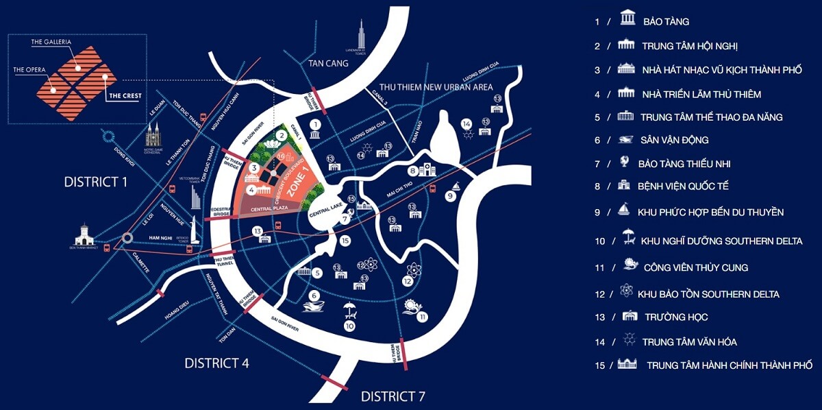 Tọa lạc tại khu chức năng số 1, khu đô thị mới Thủ Thiêm, quận 2, TP. Thủ Đức, TP. Hồ Chí Minh