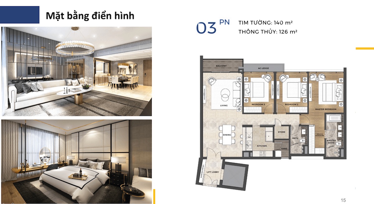 Giá căn hộ loại 3 phòng ngủ (140m2): 16 tỷ – 17.5 tỷ