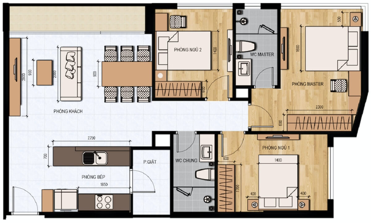 Mặt bằng căn hộ Thủ Thiêm Dragon được thiết kế hiện đại, các căn hộ với hệ thống cửa sổ lớn giúp căn hộ trọn vẹn đón nhận không khí trong lành, tươi mát từ sông Sài Gòn.
